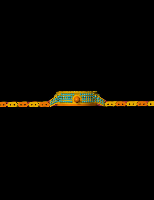 Luxury Square Dial Watch CAD File – Gemstone Bezel & Articulated Strap | 3D Printable Jewelry Design