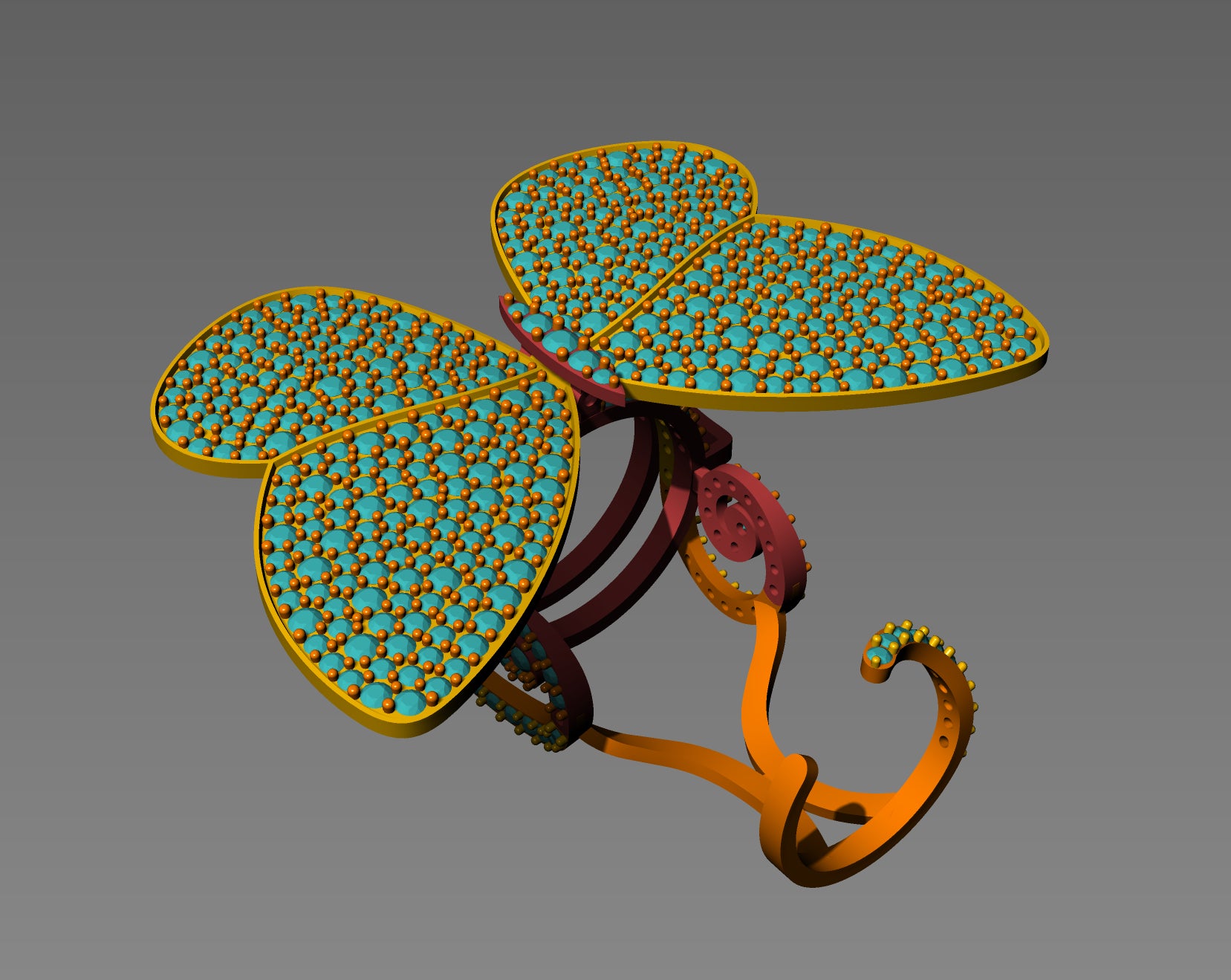 Description. A unique butterfly cocktail ring CAD design with movable wings that fold when the finger bends. This production-ready 3D model includes gem settings, hinge mechanism, and weight calculations for 14K, 18K, and 22K gold. Perfect for manufacturers and designers looking for statement jewelry with engineered motion.