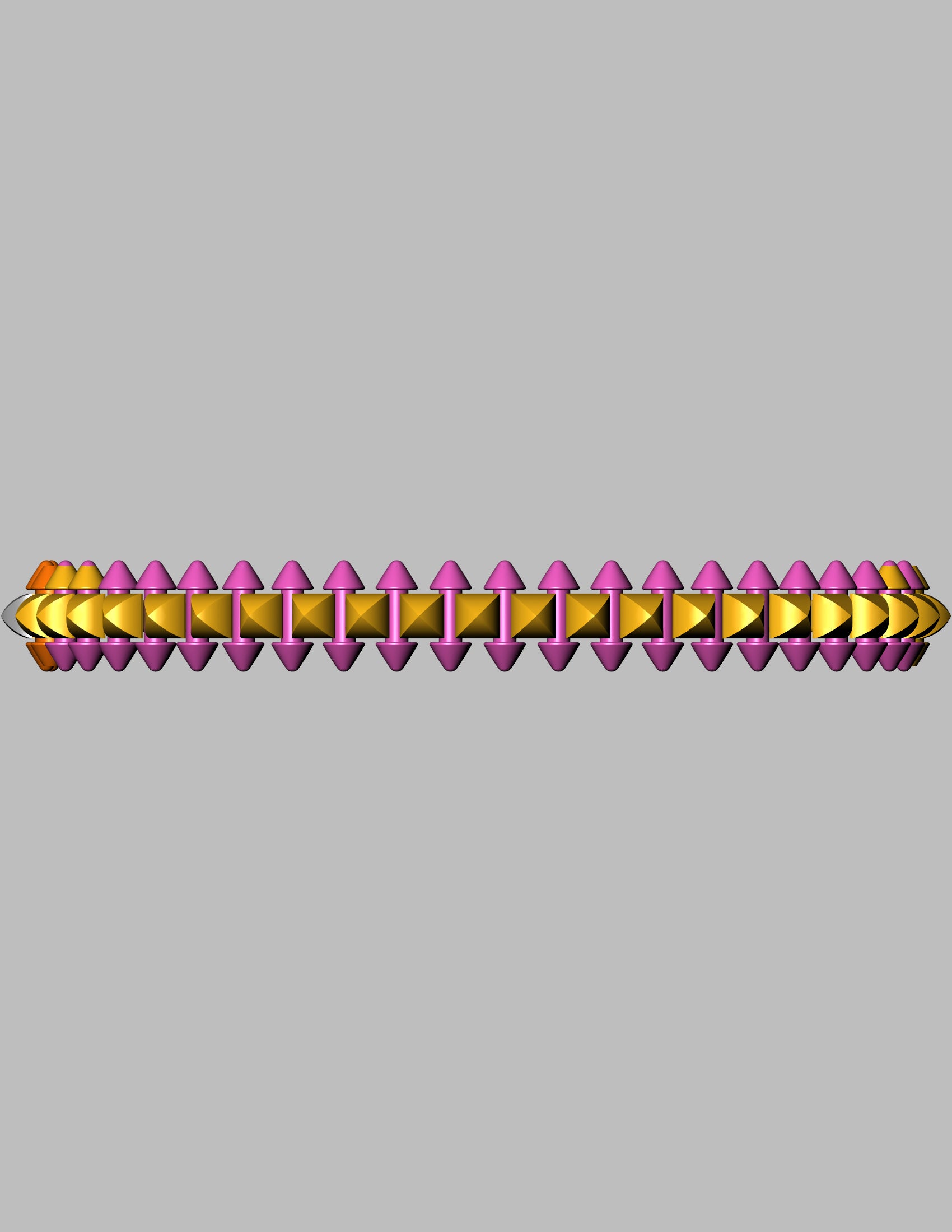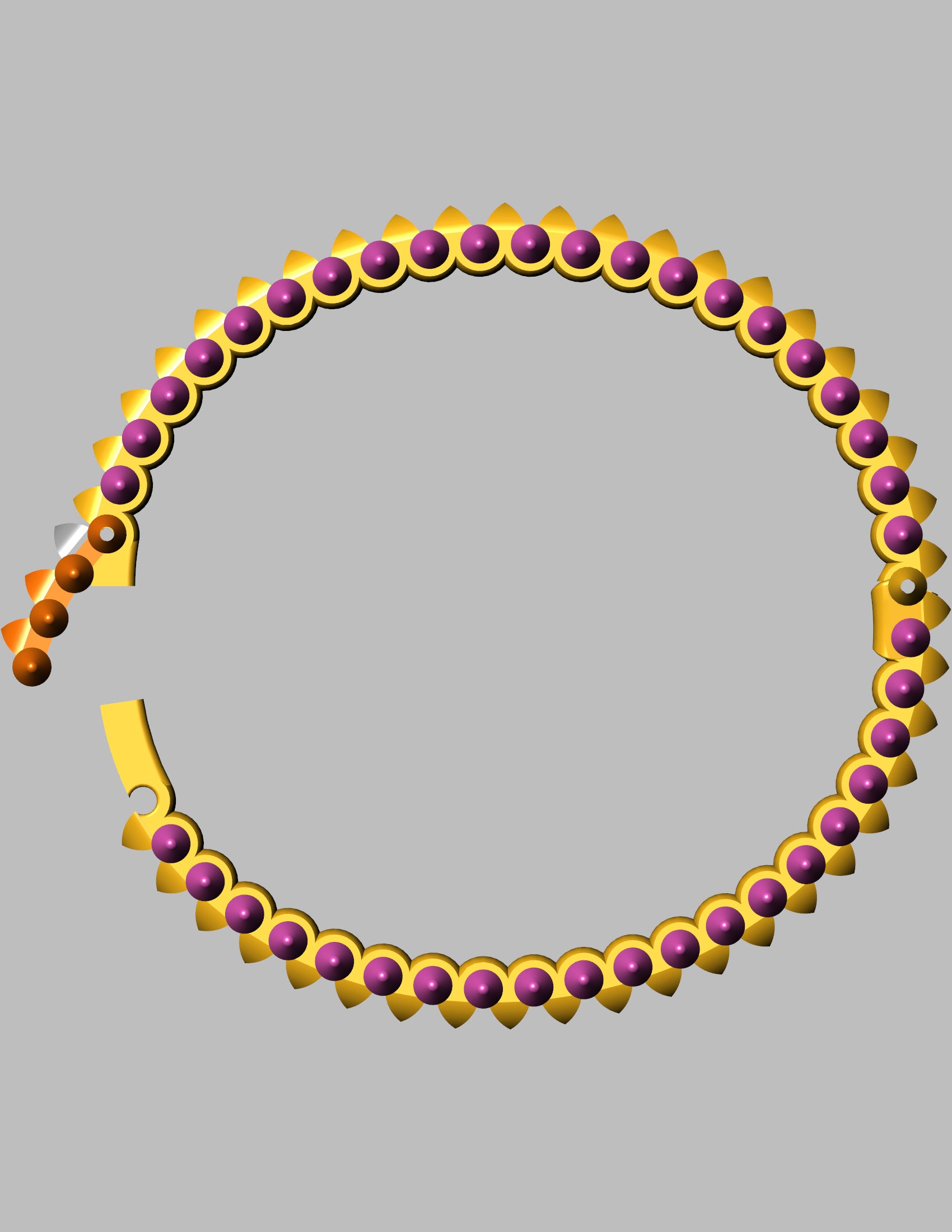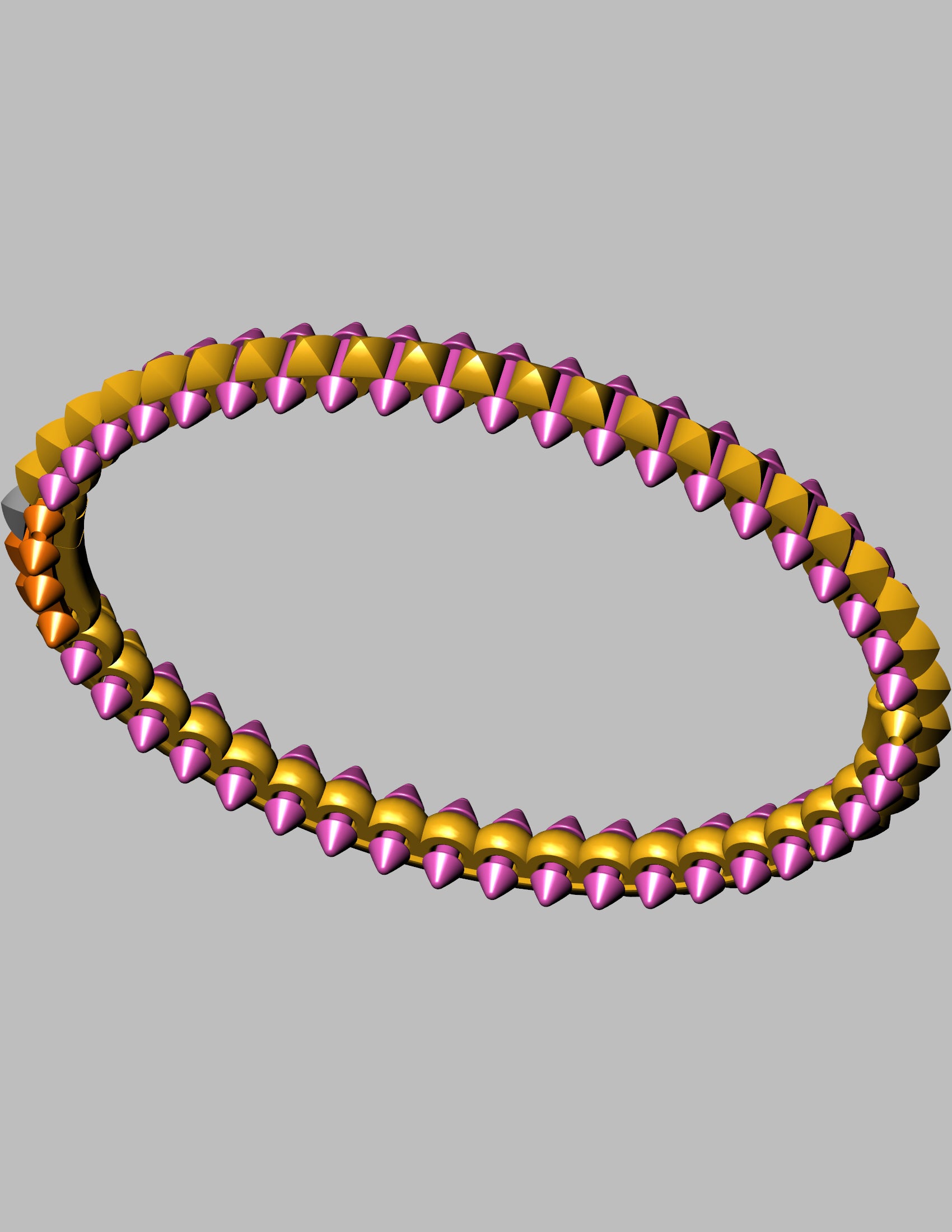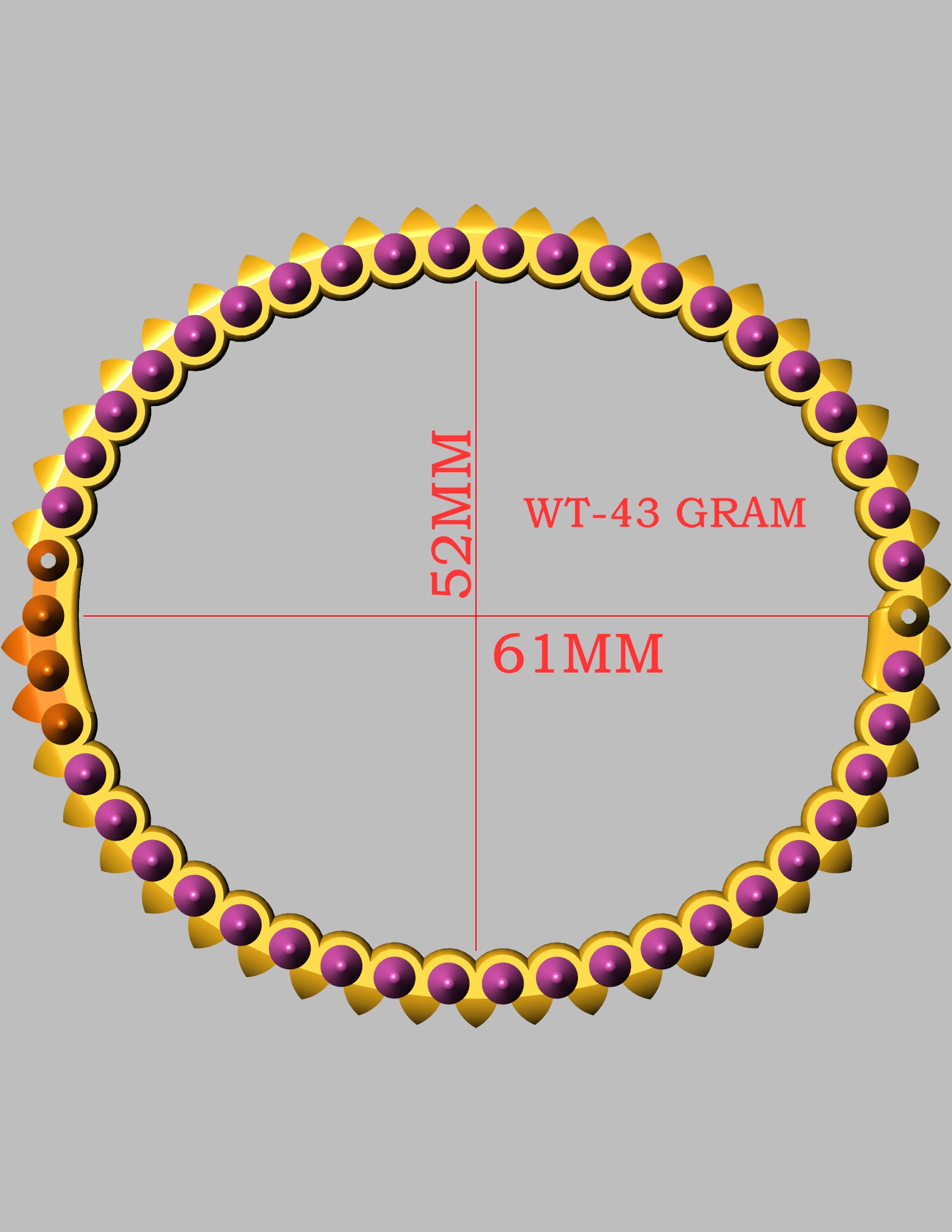 Inspired by the striking Clash de Cartier collection, this CAD model features a bold and modern spiked dome motif all around the bangle. Designed for 18K gold with a weight of approximately 43 grams, the piece showcases alternating dome-shaped gem settings along a geometric band, combining luxury with a rebellious edge.