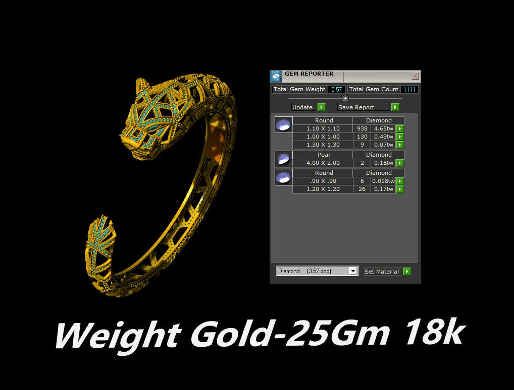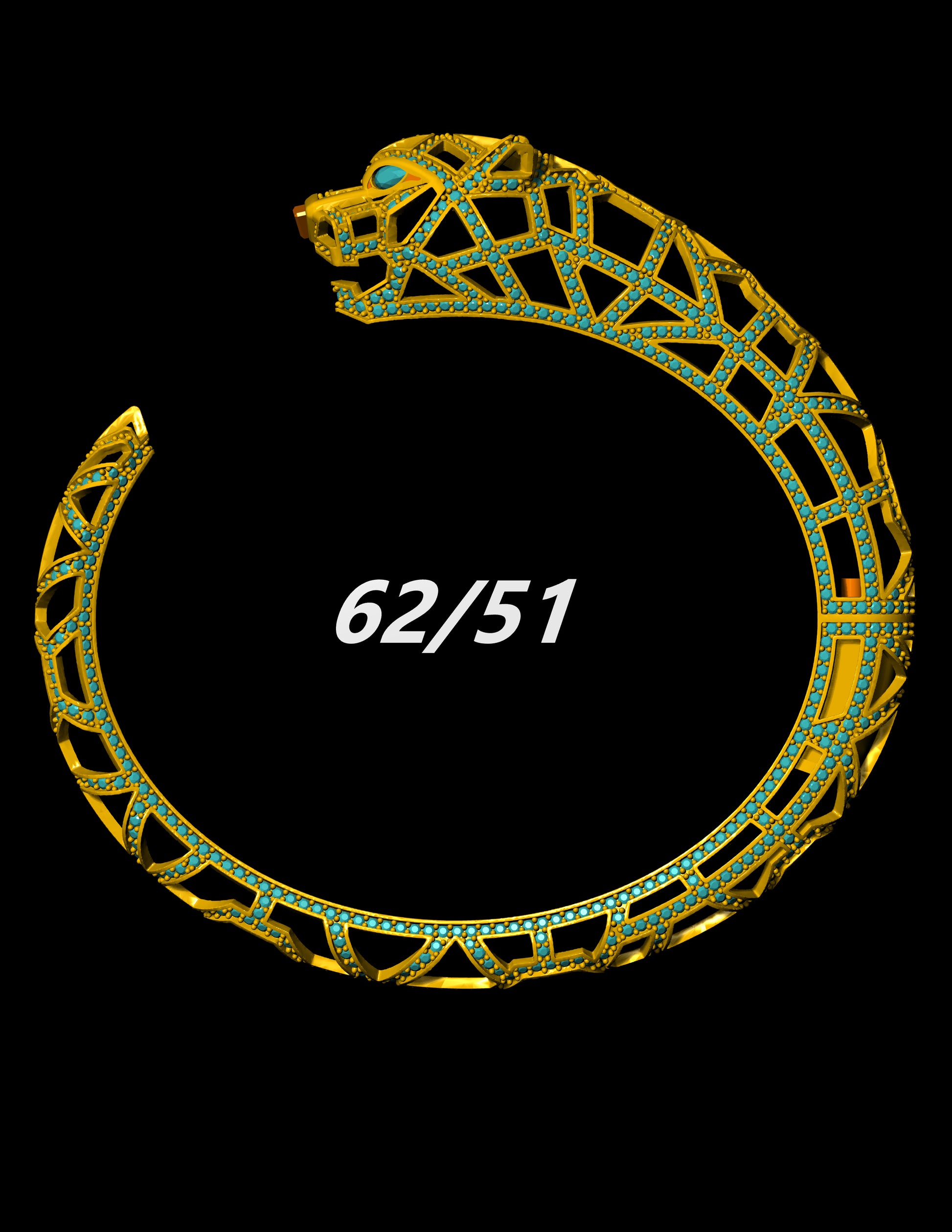 Unleash bold elegance with this meticulously designed Panther Head Bangle Bracelet CAD model. Inspired by the iconic Cartier style, this bracelet features a fierce panther head and tail, encrusted with 1,111 brilliant-cut diamonds across the body and face. The geometric openwork structure combines strength with sophistication, making it ideal for high-end jewelry production.