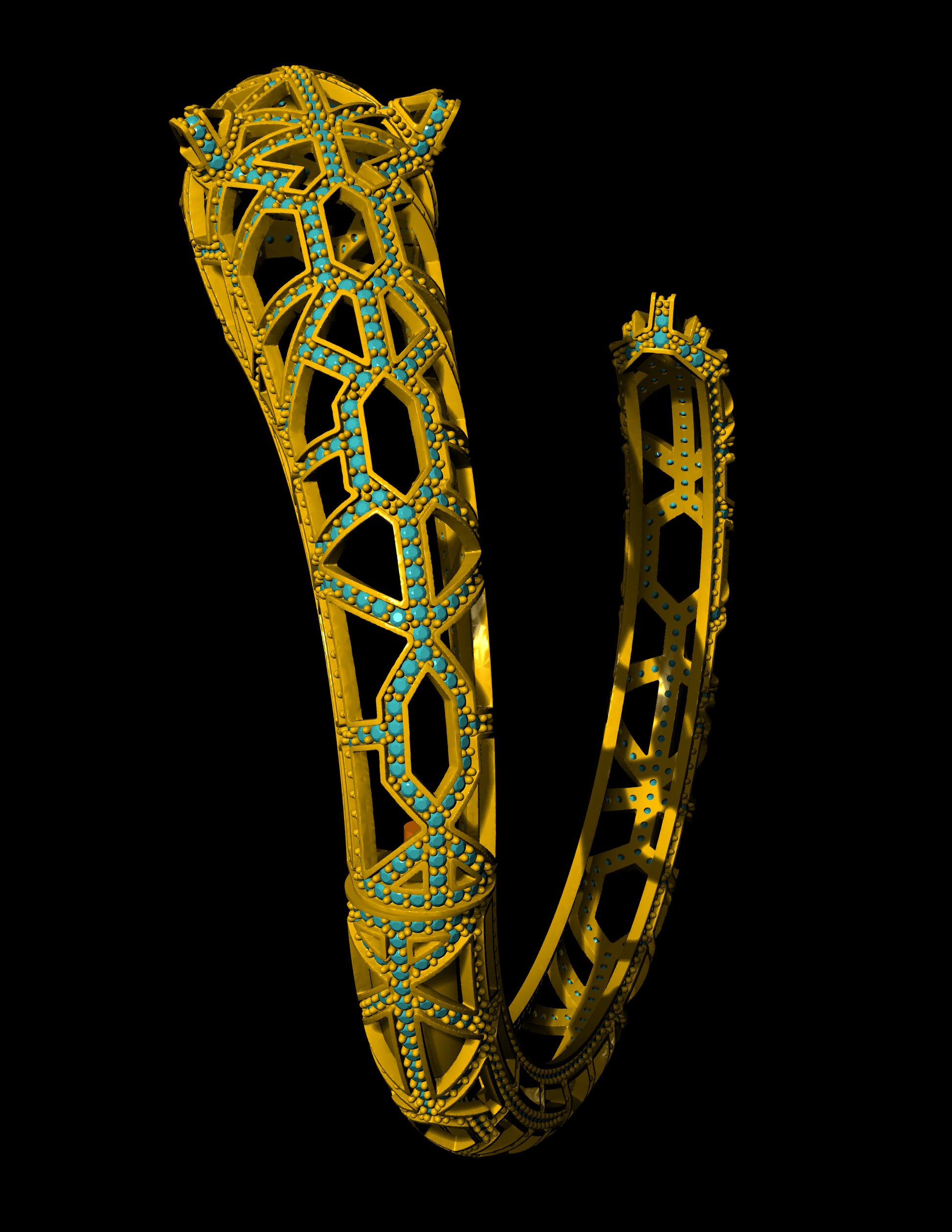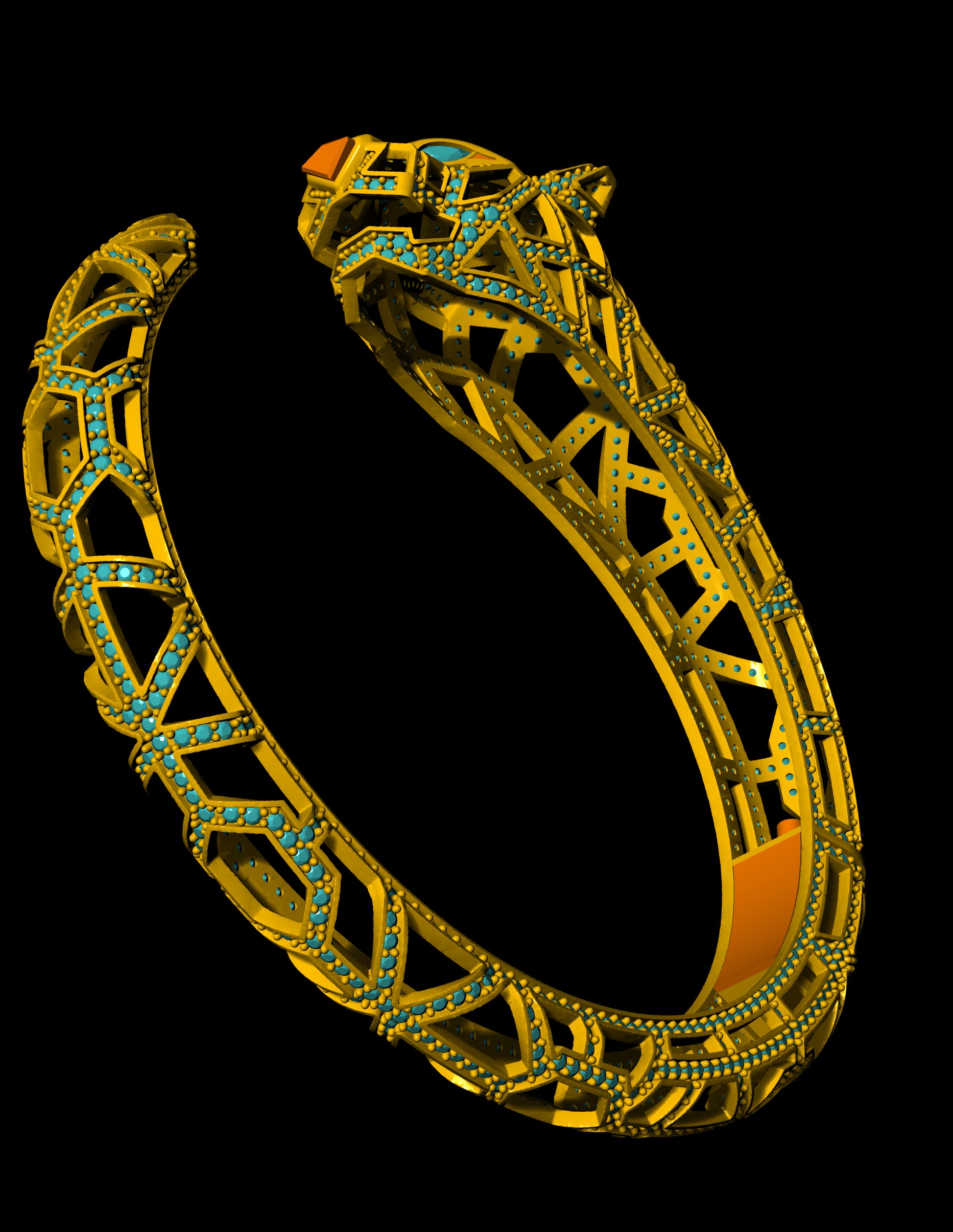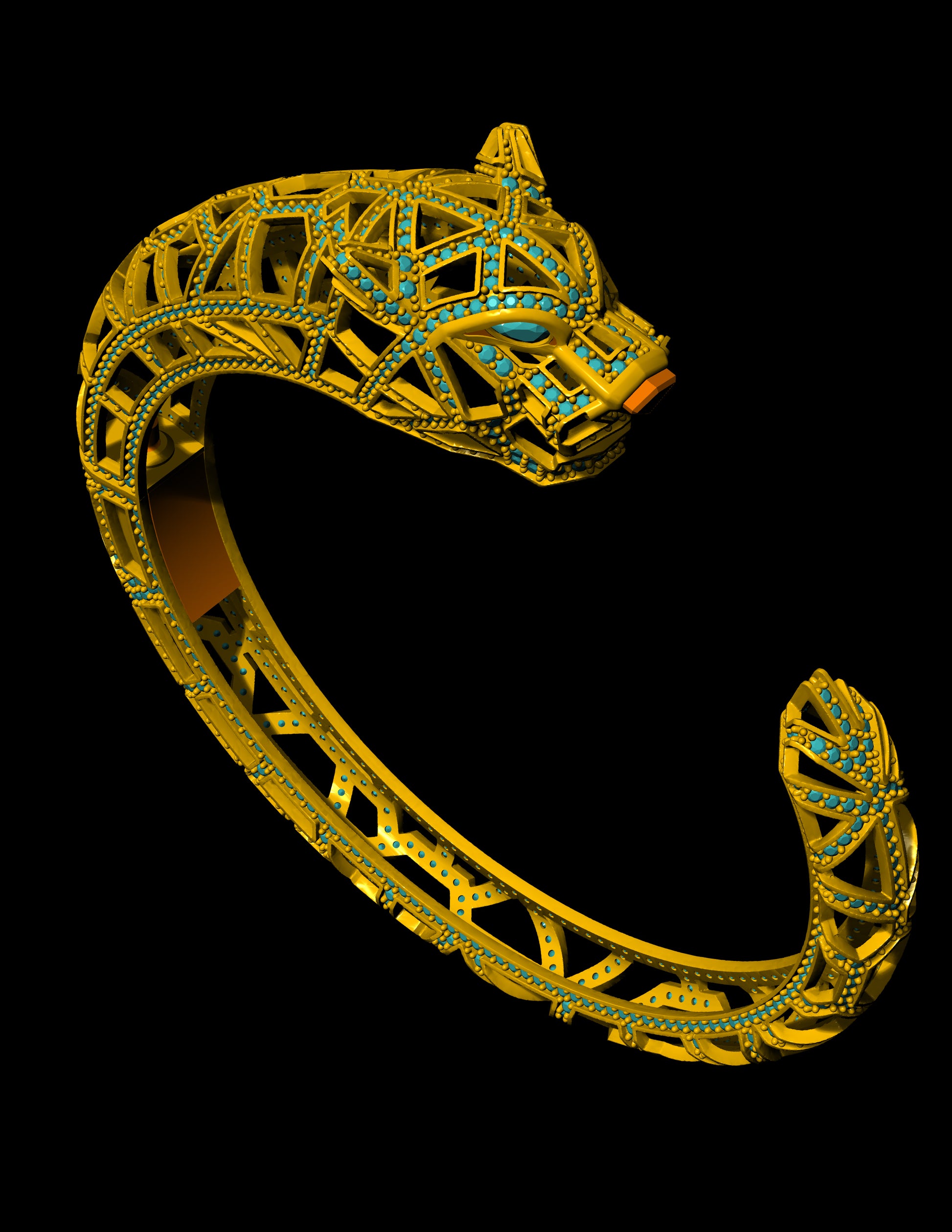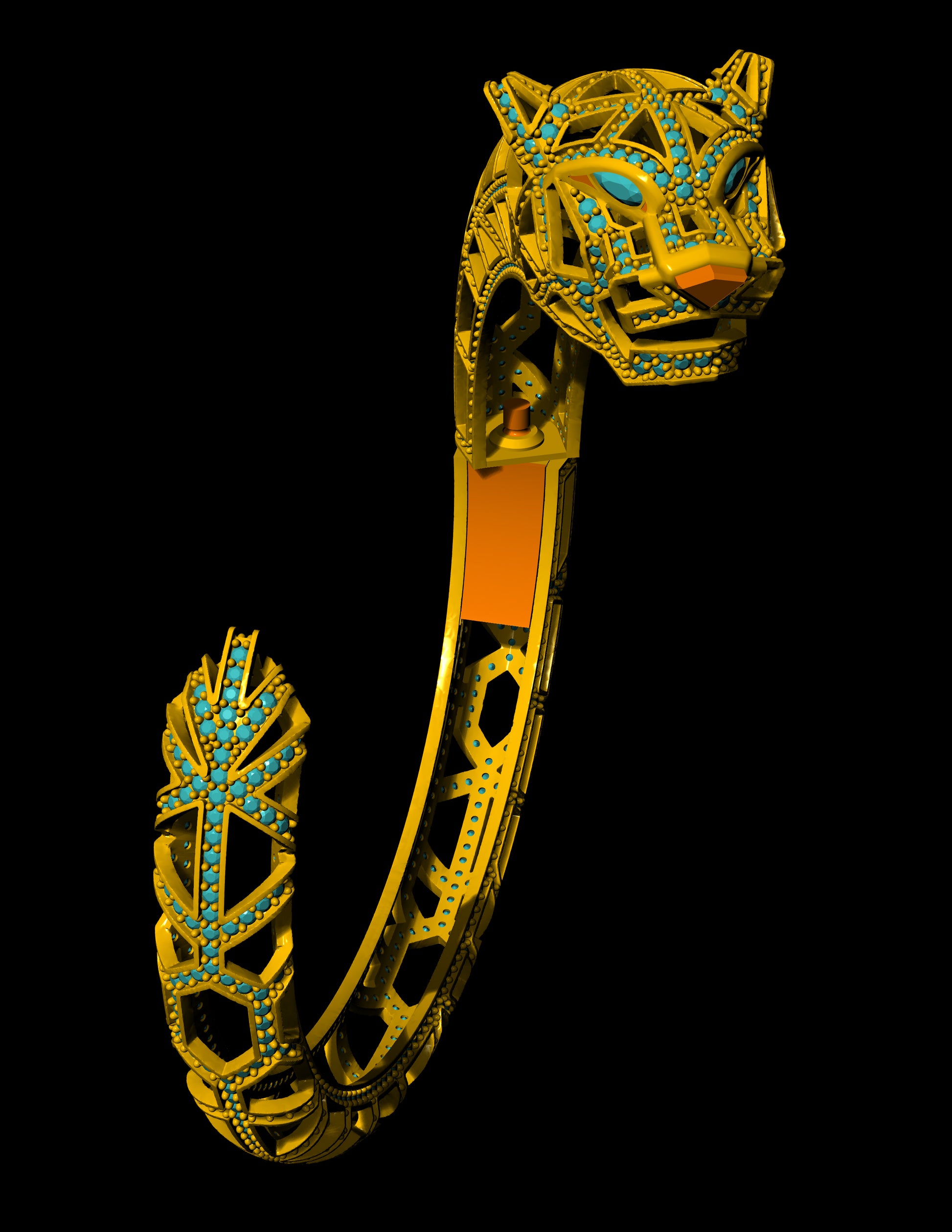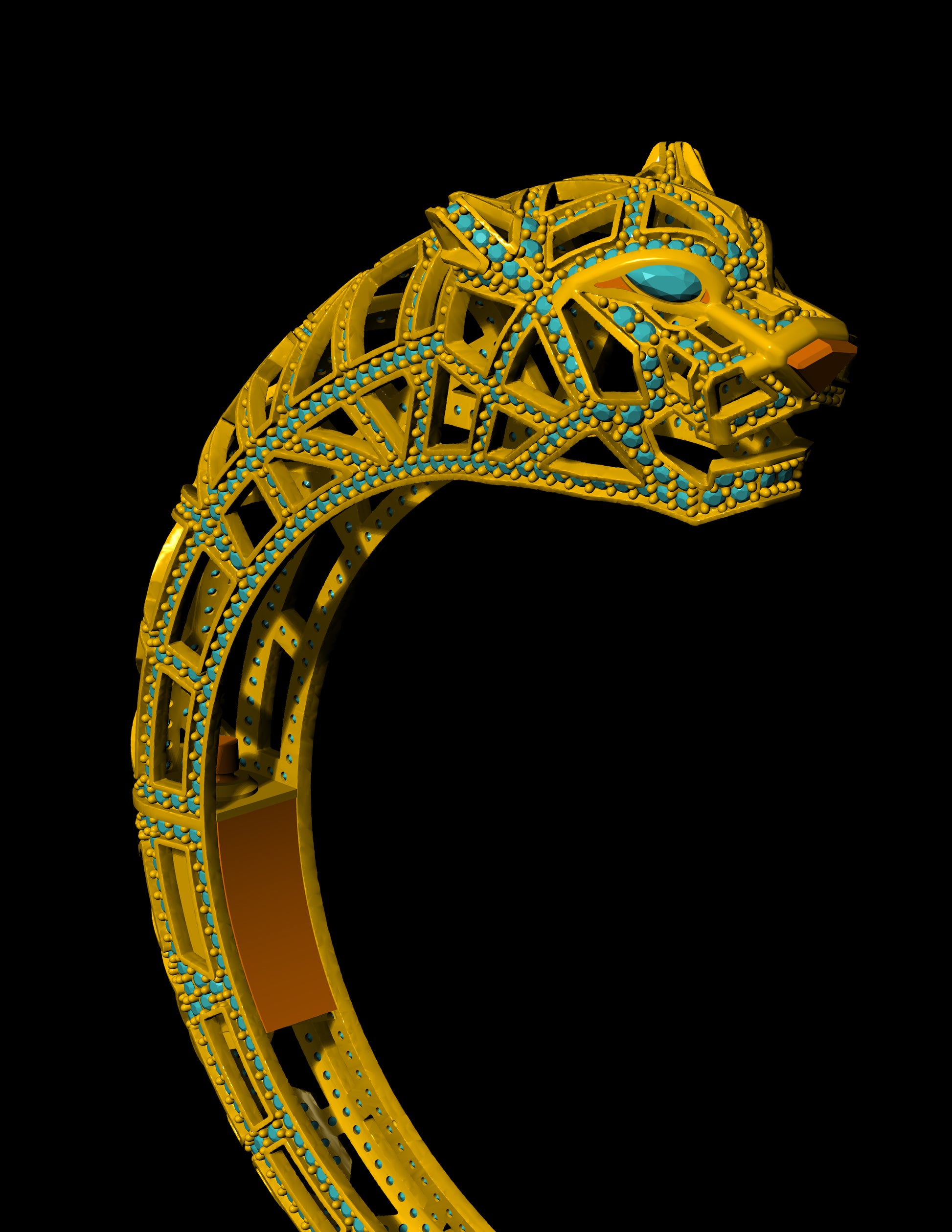 Cartier Panther Head Bangle Bracelet 3DM CAD STL File Pave Design