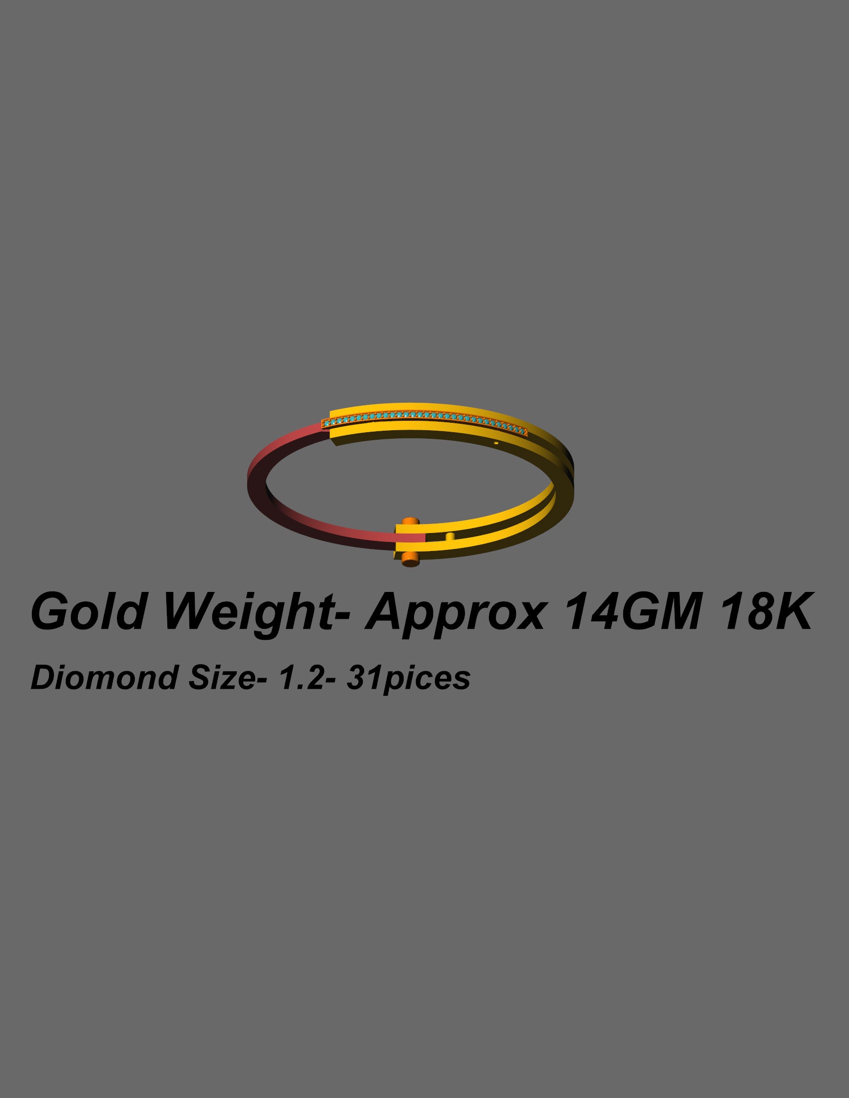 This original CAD bracelet design draws inspiration from the industrial elegance of a handcuff, combining luxury with precision. The form is clean and modern, crafted for 18K gold with an approximate metal weight of 14 grams. The bracelet features a three-lock mechanical clasp system for enhanced security and bold styling.