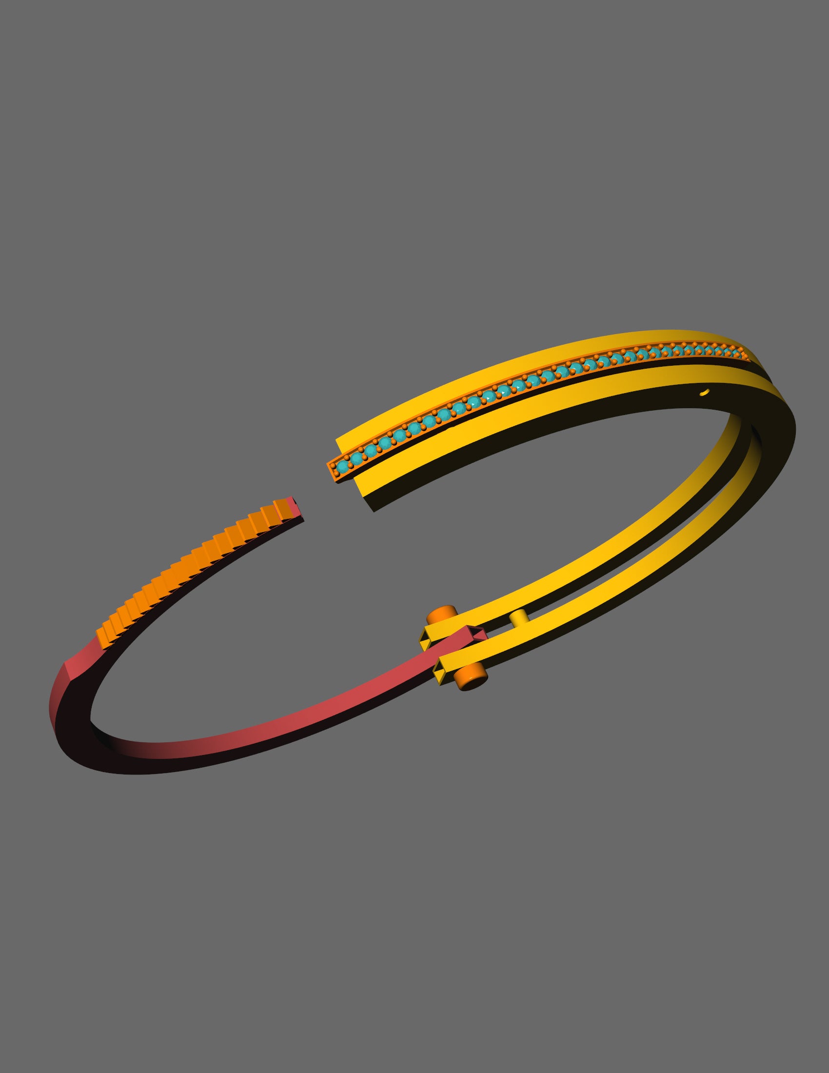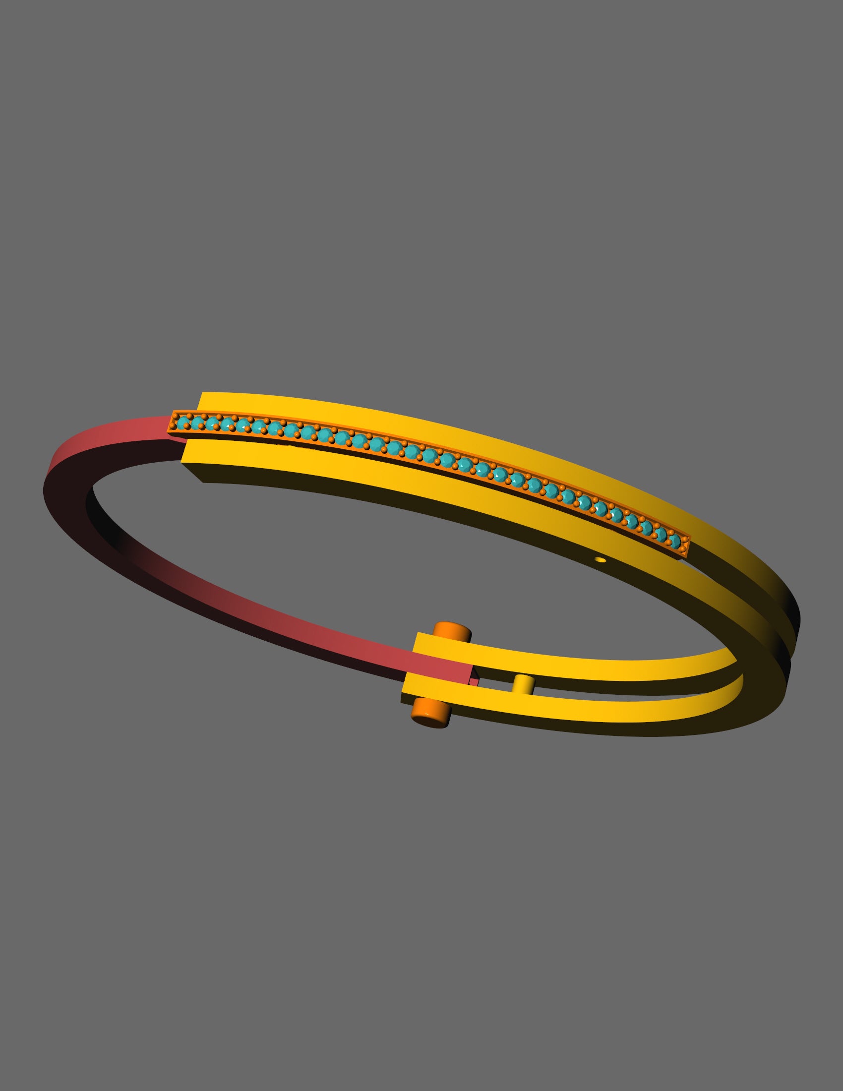 Handcuff Inspired Diamond Bracelet CAD Triple Mechanical Lock Design