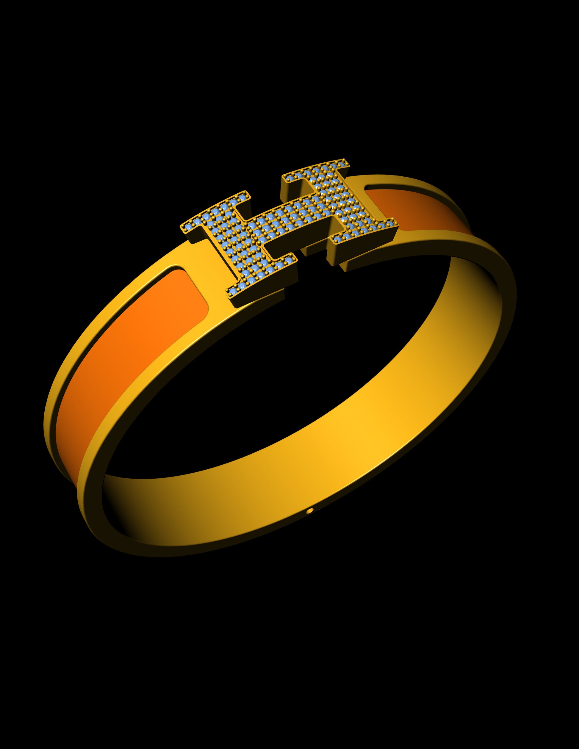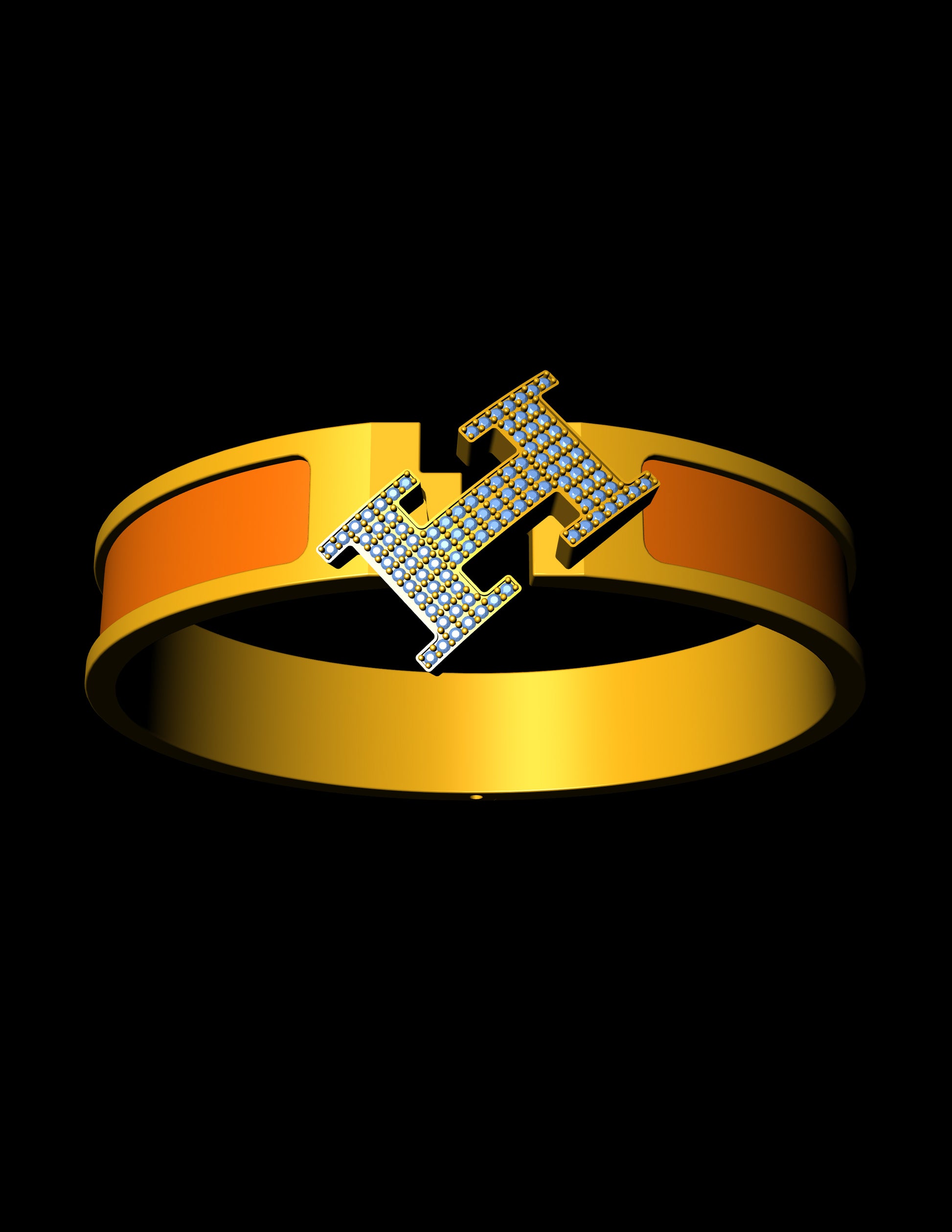 Hermes Inspired H Diamond Bangle CAD File Luxury Monogram Bracelet Design