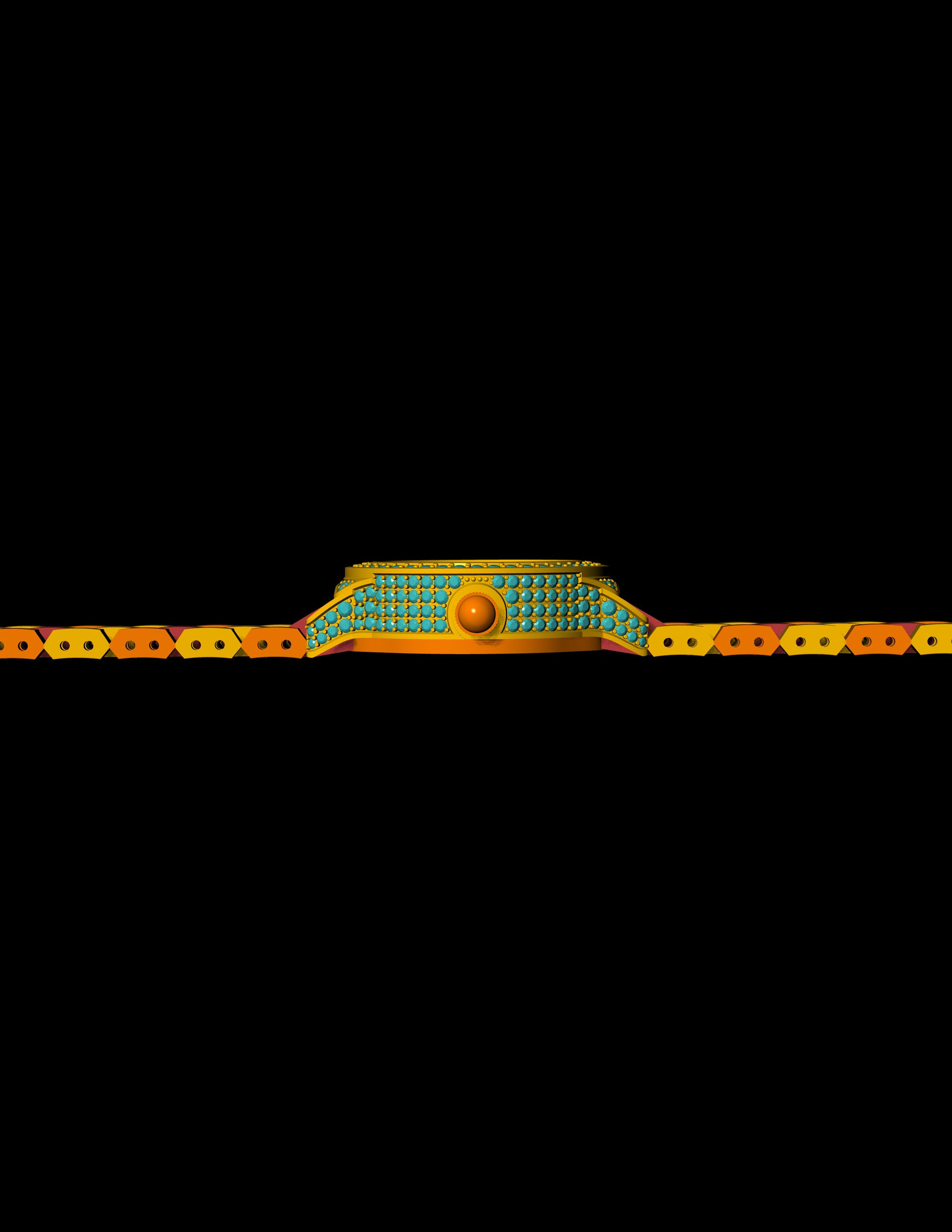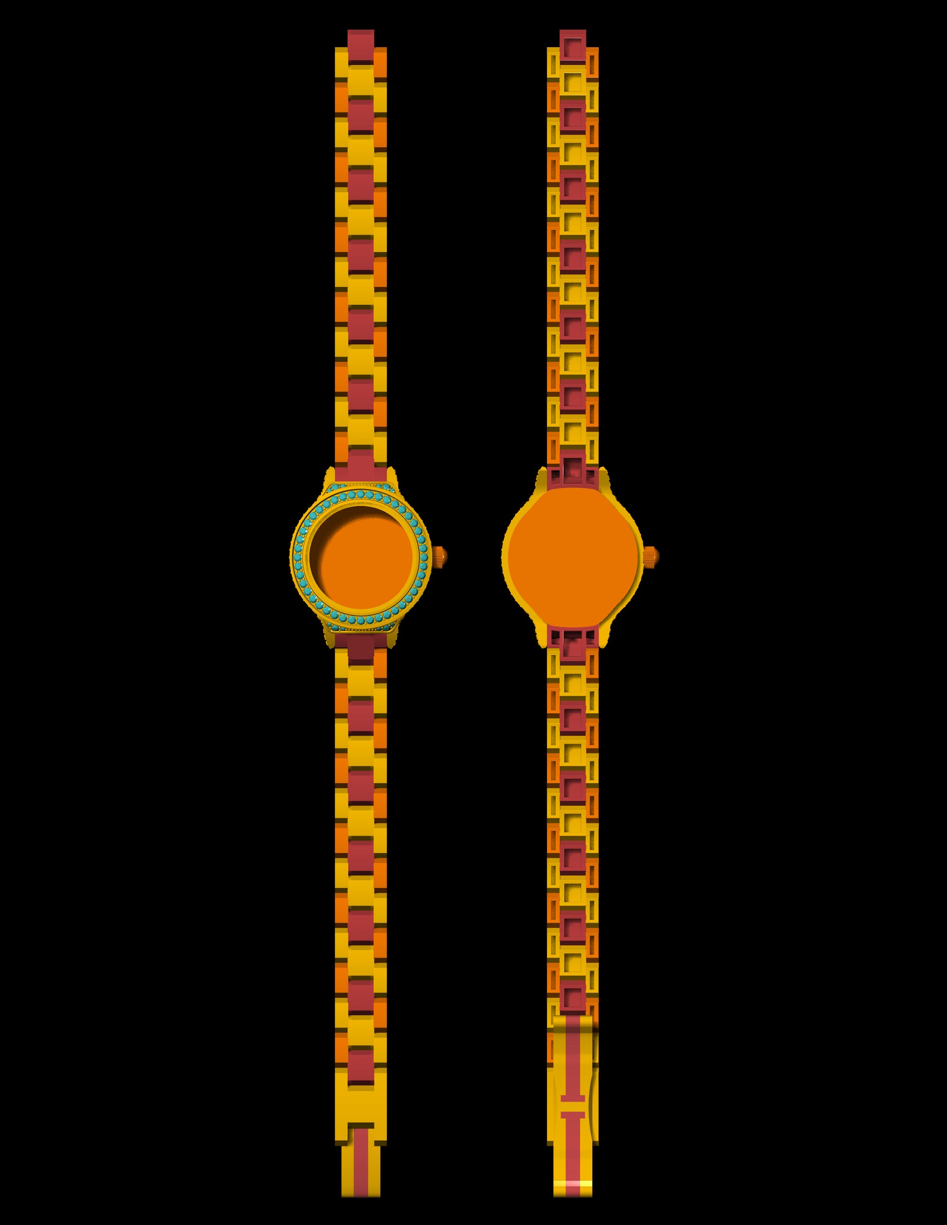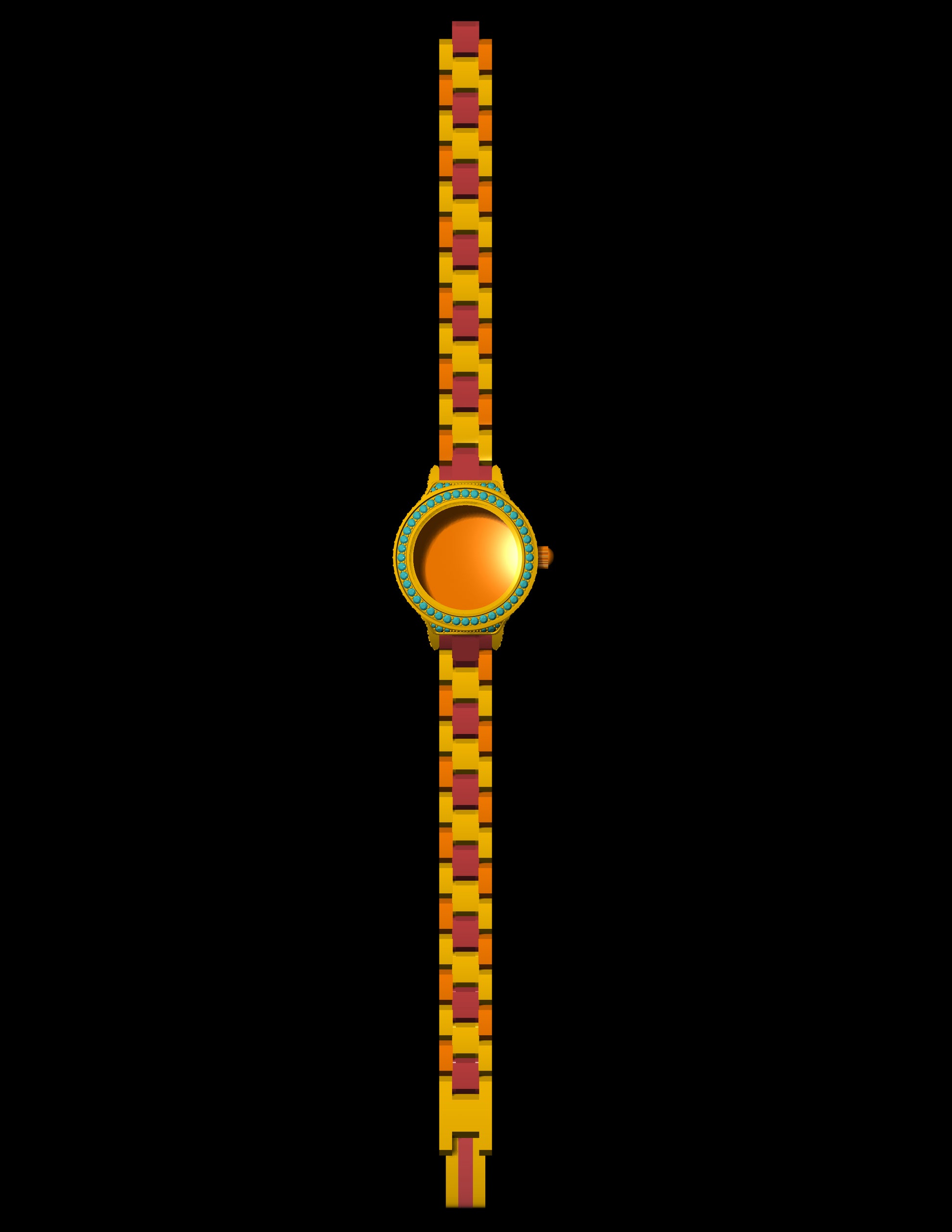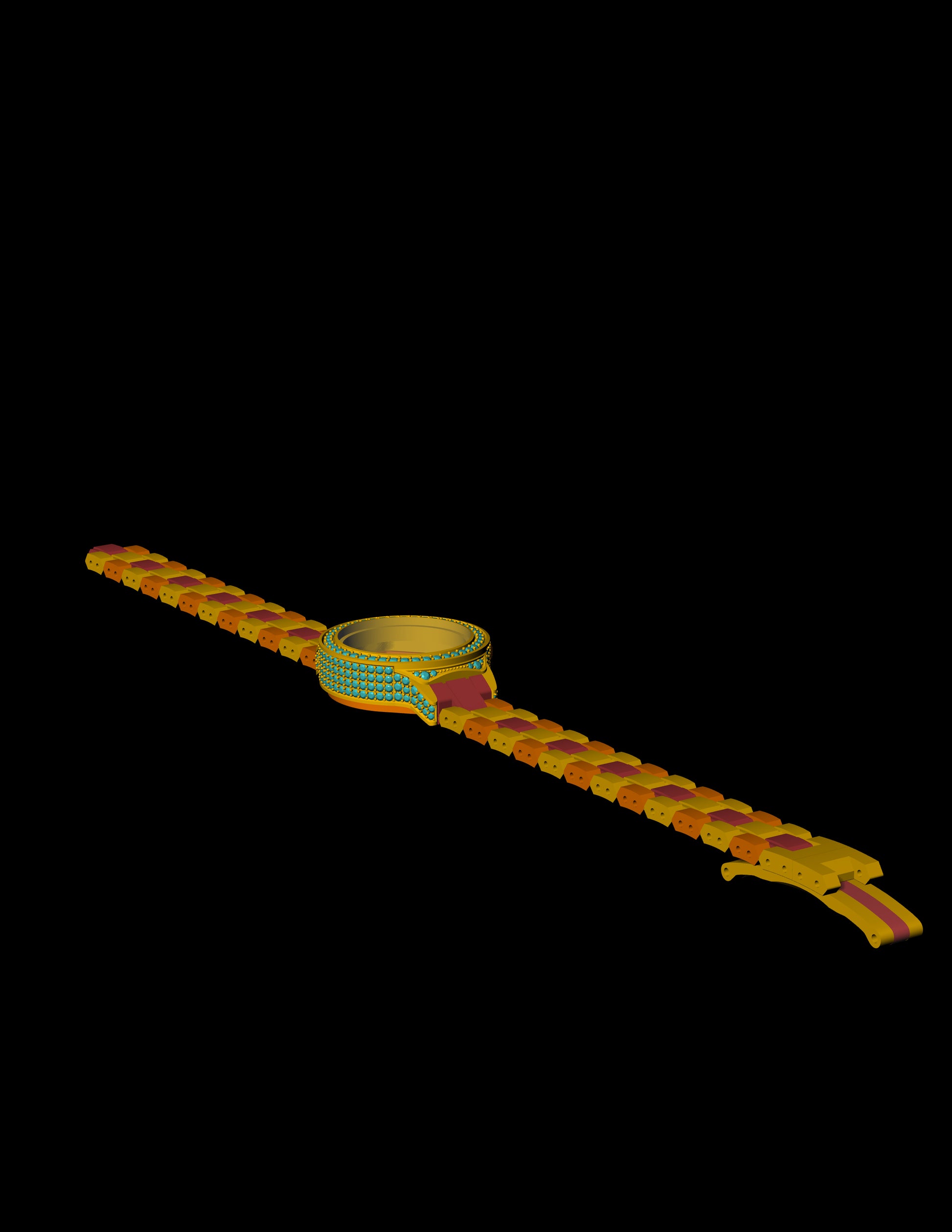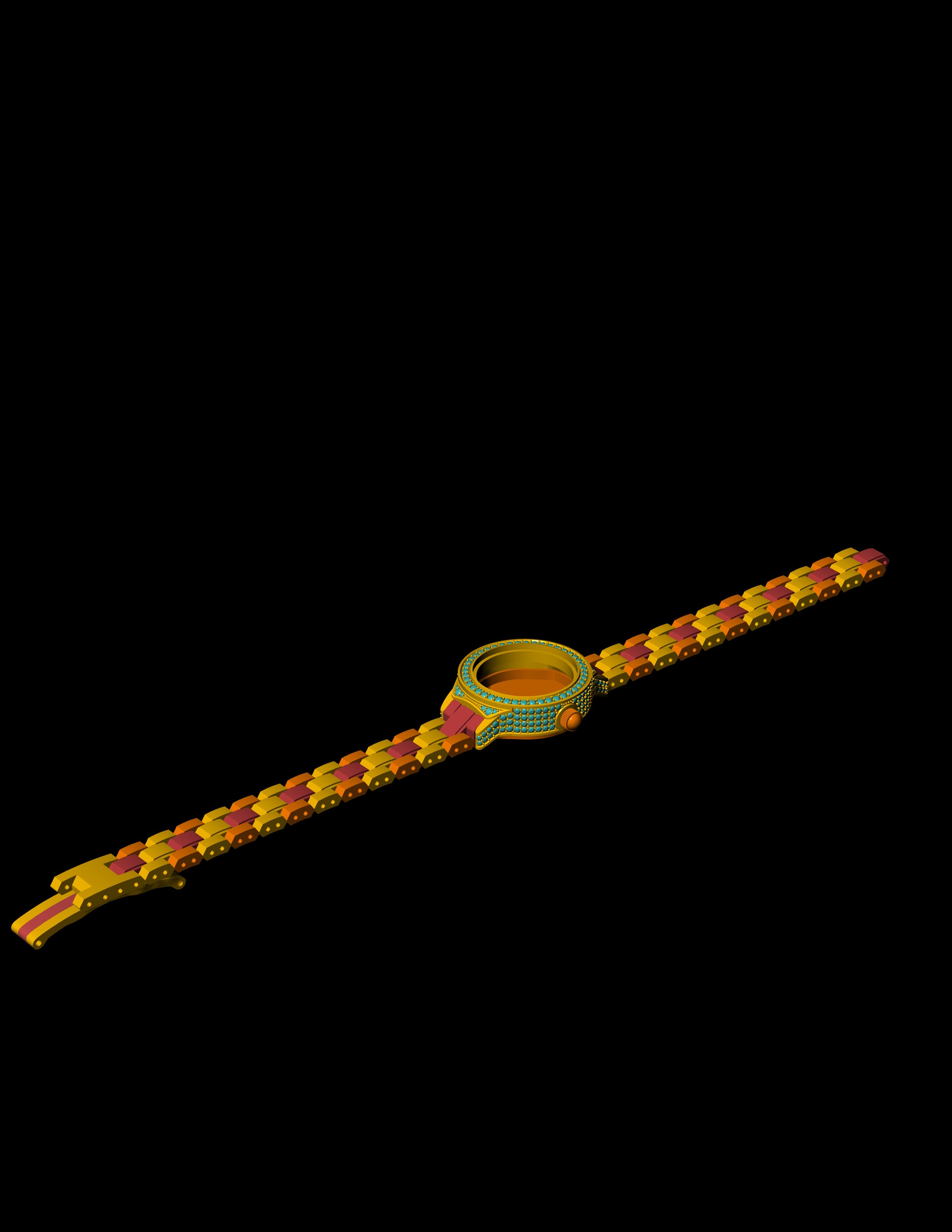 Luxury Bracelet Watch CAD File – Gem-Set Bezel, Full Link Strap (.3dm