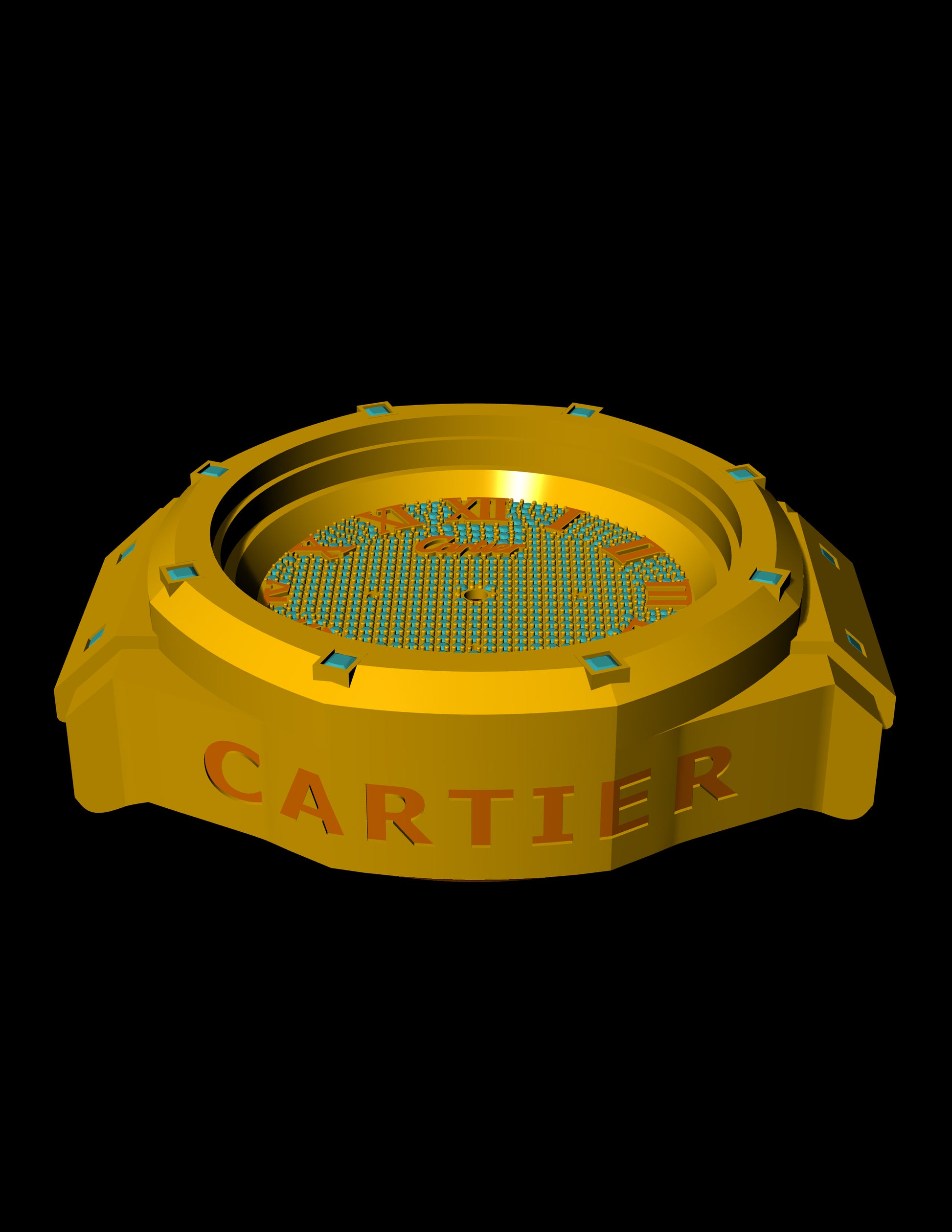 Luxury Cartier-Inspired Watch CAD File – Bold Roman Dial & Gemstone Bezel Design