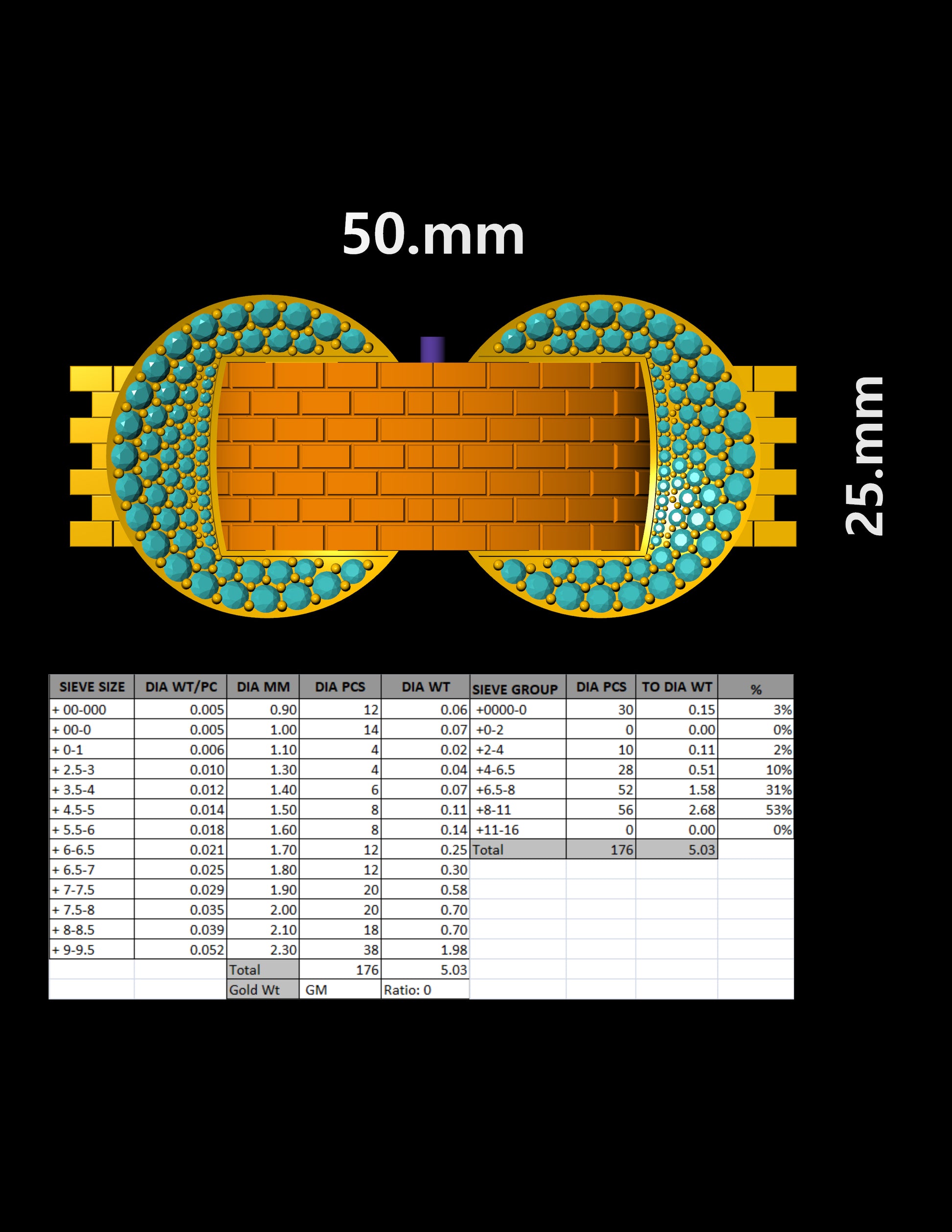 This CAD file includes a fully engineered clasp and cover system with gemstone settings and accurate weight estimations for multiple gold purities.