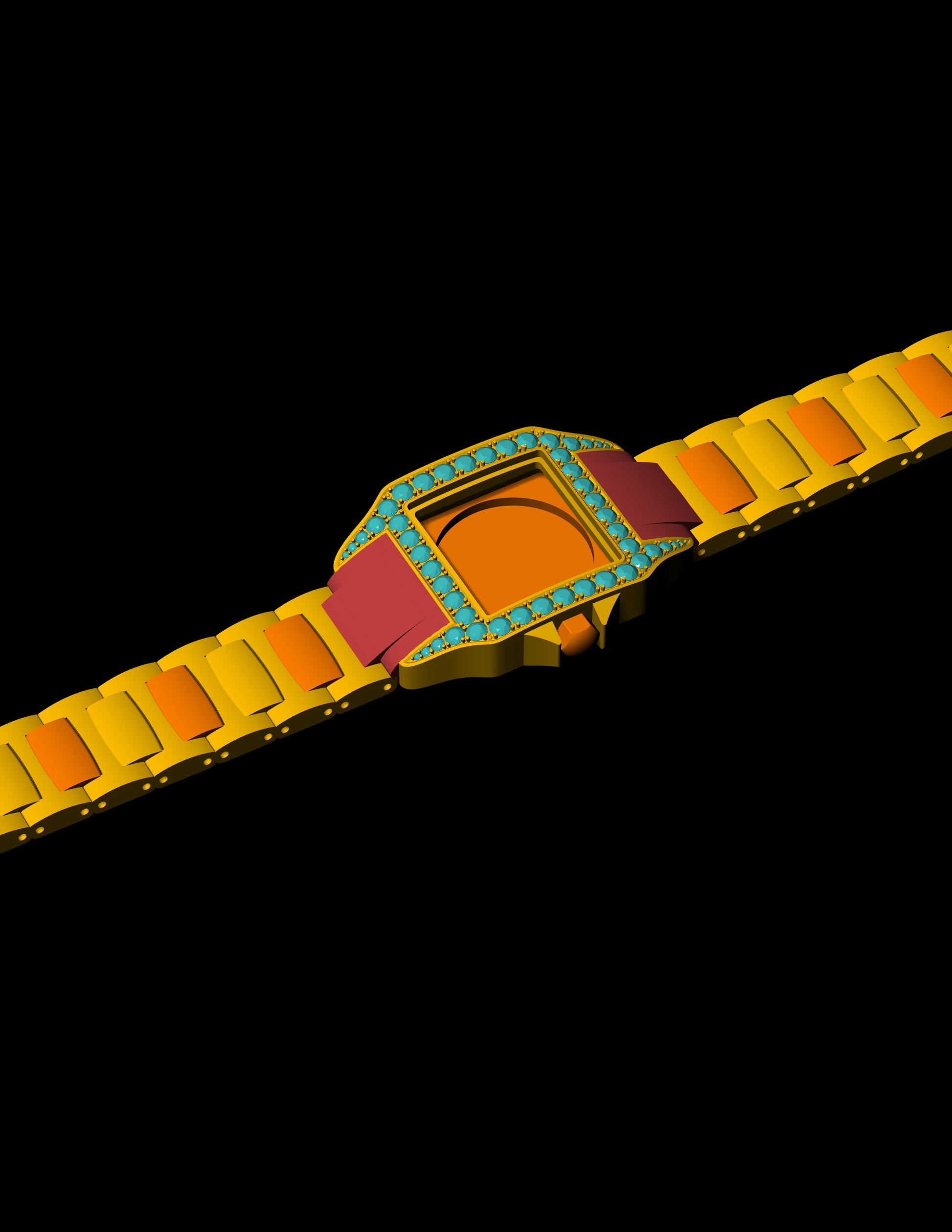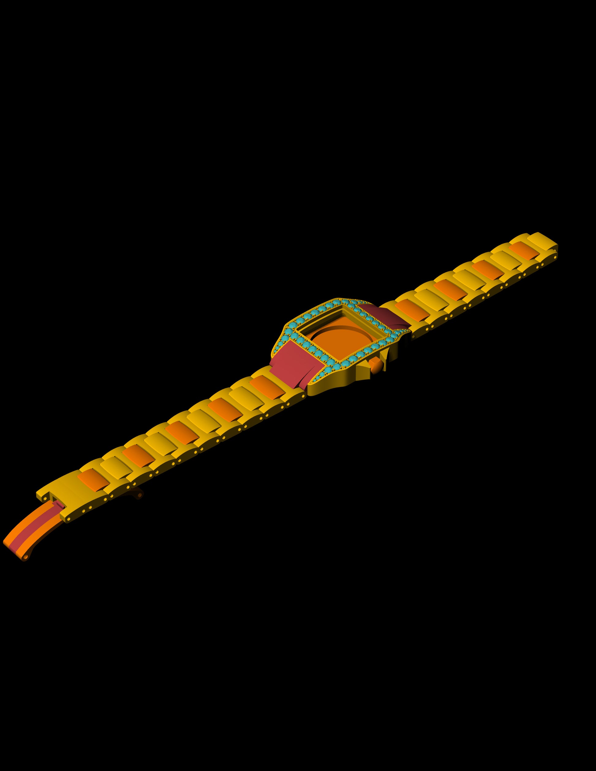 Luxury Square Dial Watch CAD File – Gemstone Bezel & Articulated Strap | 3D Printable Jewelry Design