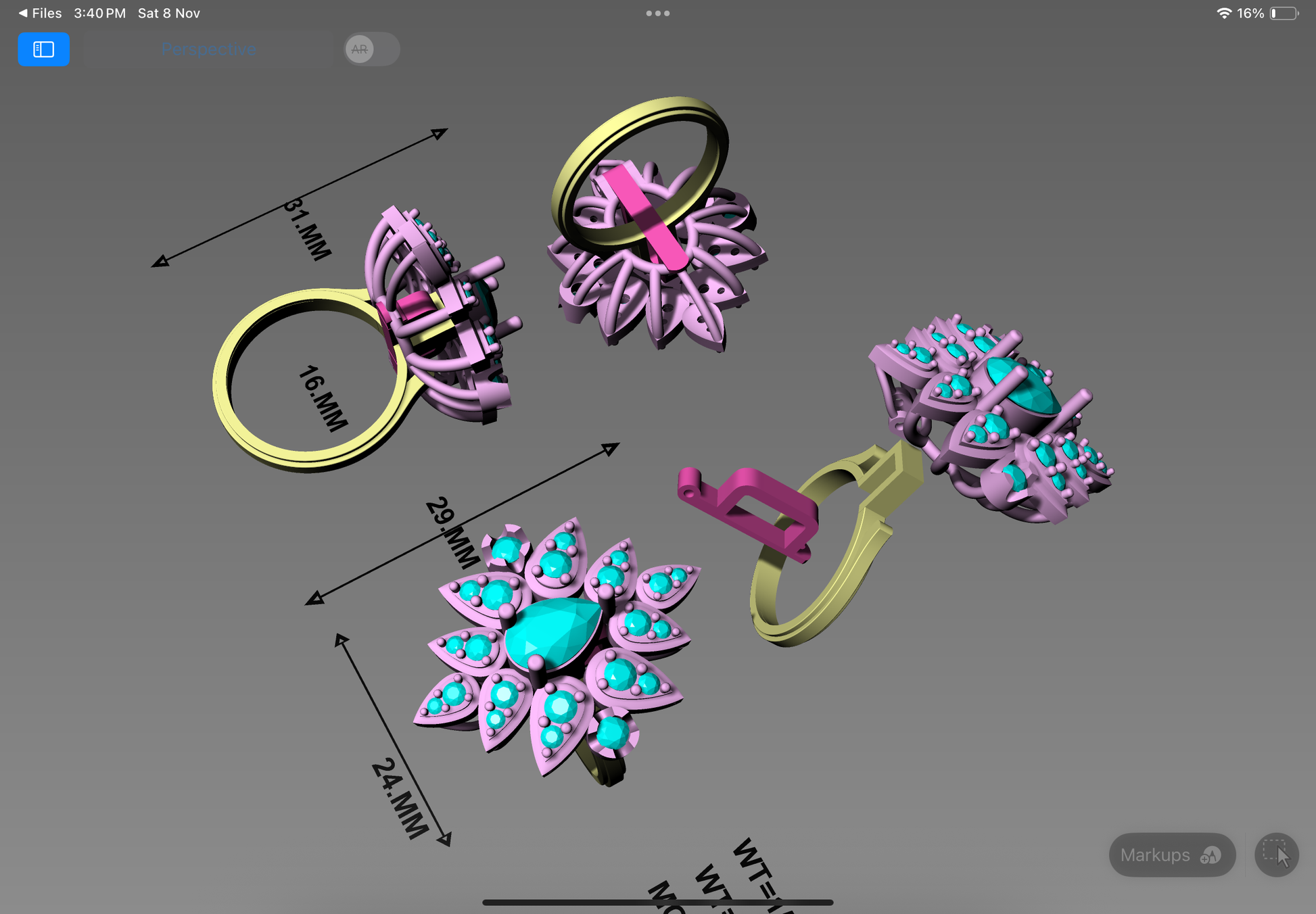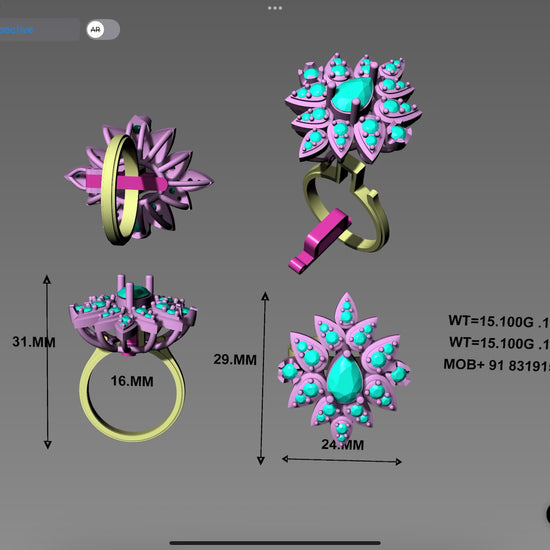 - Design Style: Multi-layered petal formation with central pear gemstone