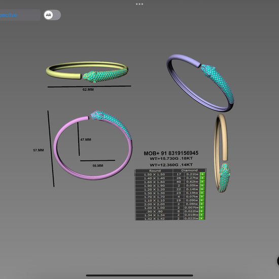 Presenting the Panthera Elegance Bangle — a premium CAD design inspired by the iconic strength and elegance of the panther. This detailed CAD file is fully editable and optimized for jewelry manufacturing, featuring realistic proportions and accurate stone settings. The design includes a flexible body with a panther head motif set for micro-pavé diamonds, offering a modern and luxurious aesthetic.