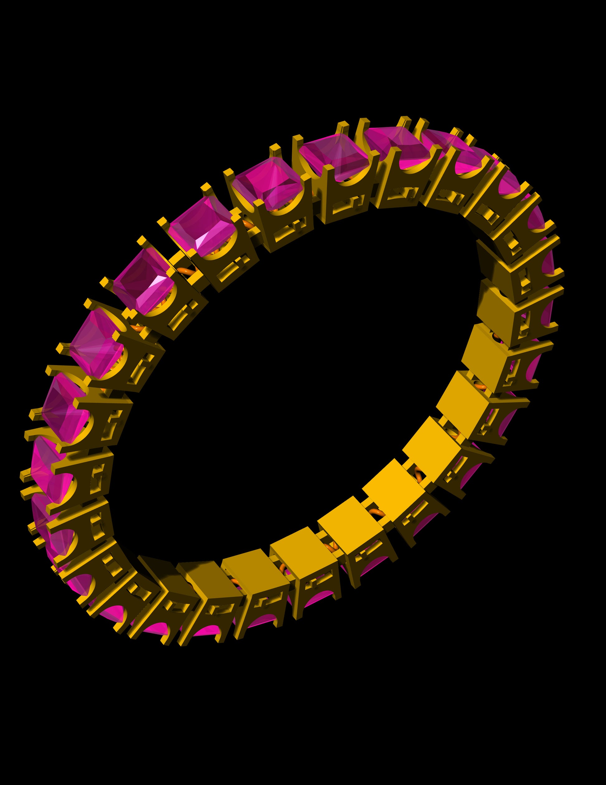 Princess Cut Spring Bracelet CAD File | Flexible Gold Bangle Design with 49 Stones | 3DM & STL Download