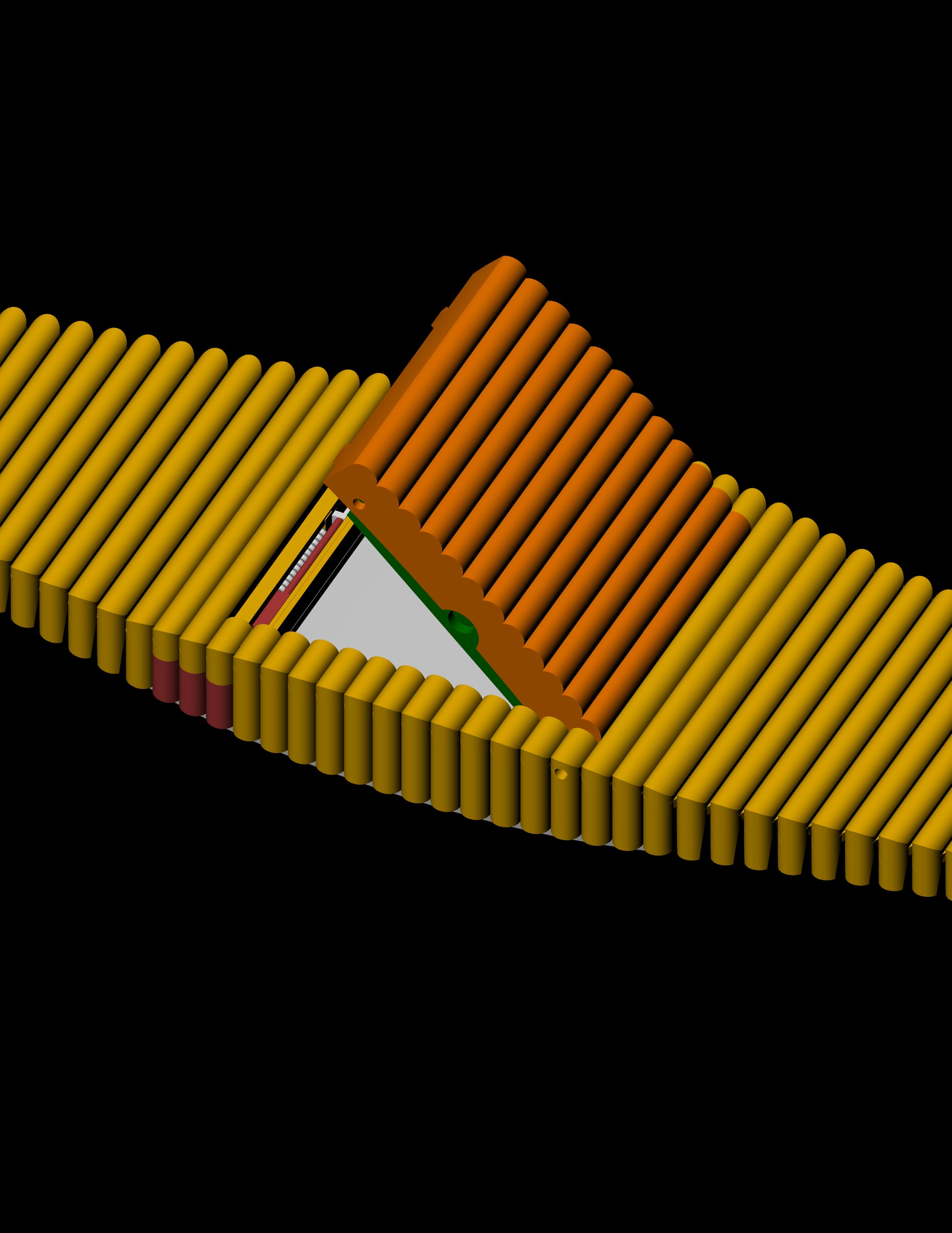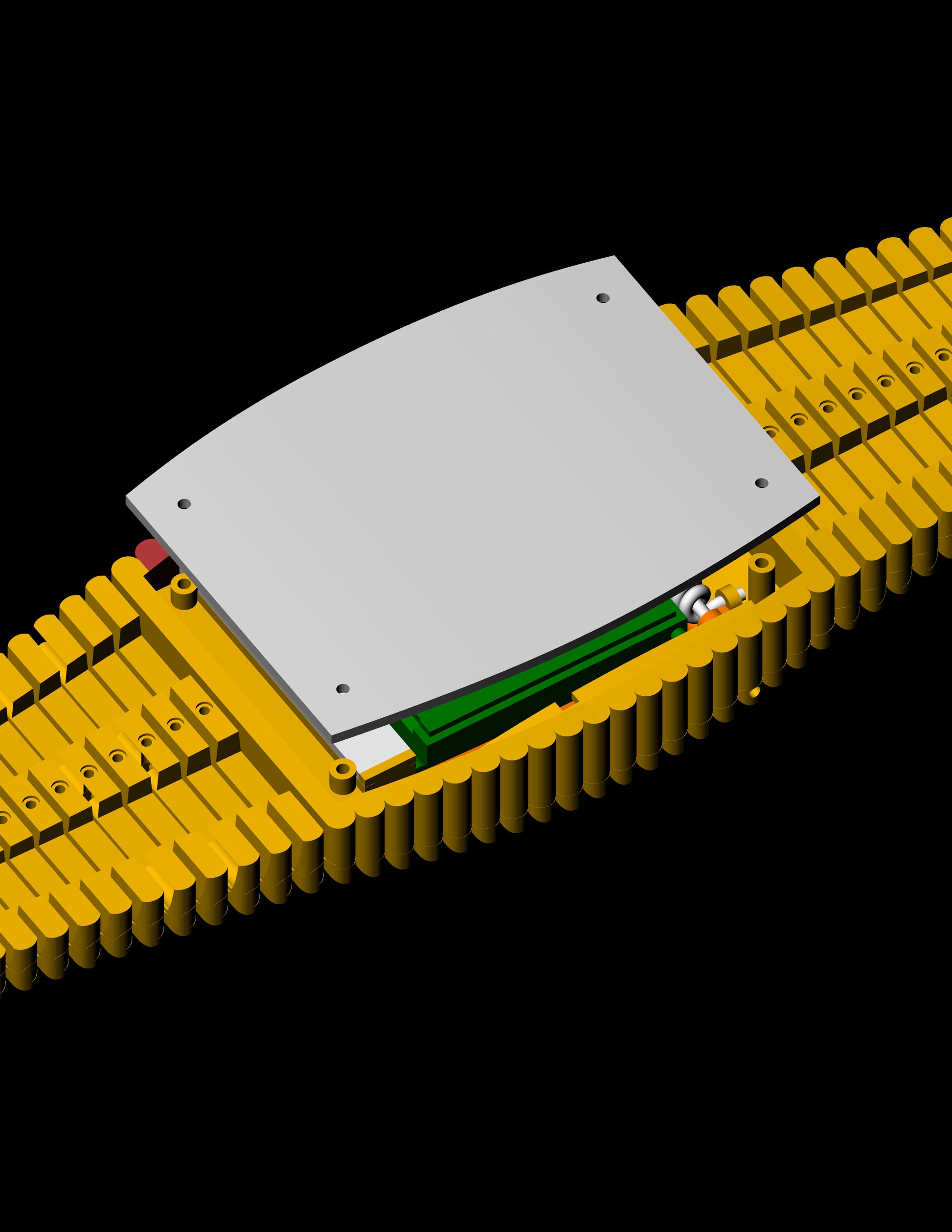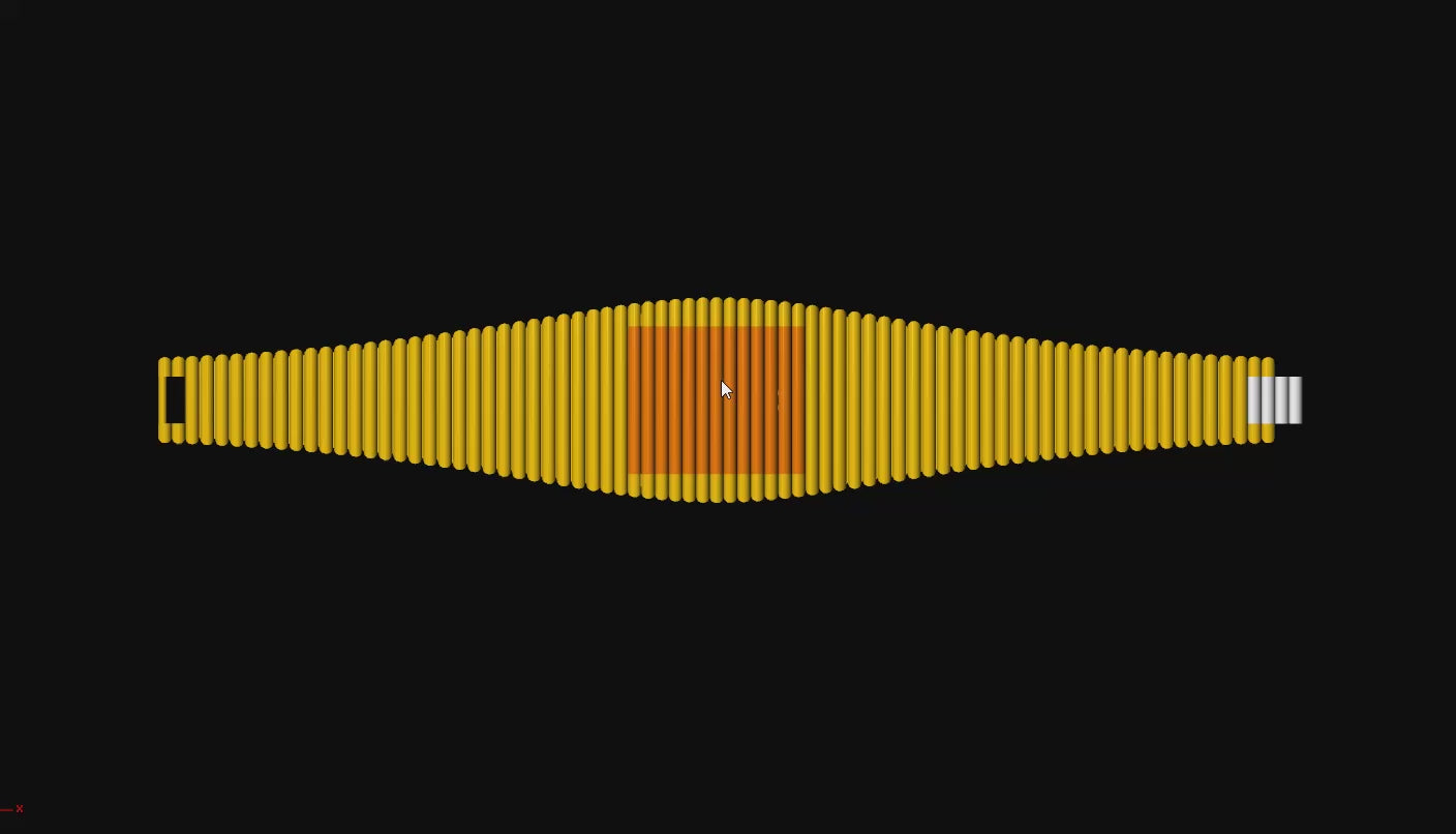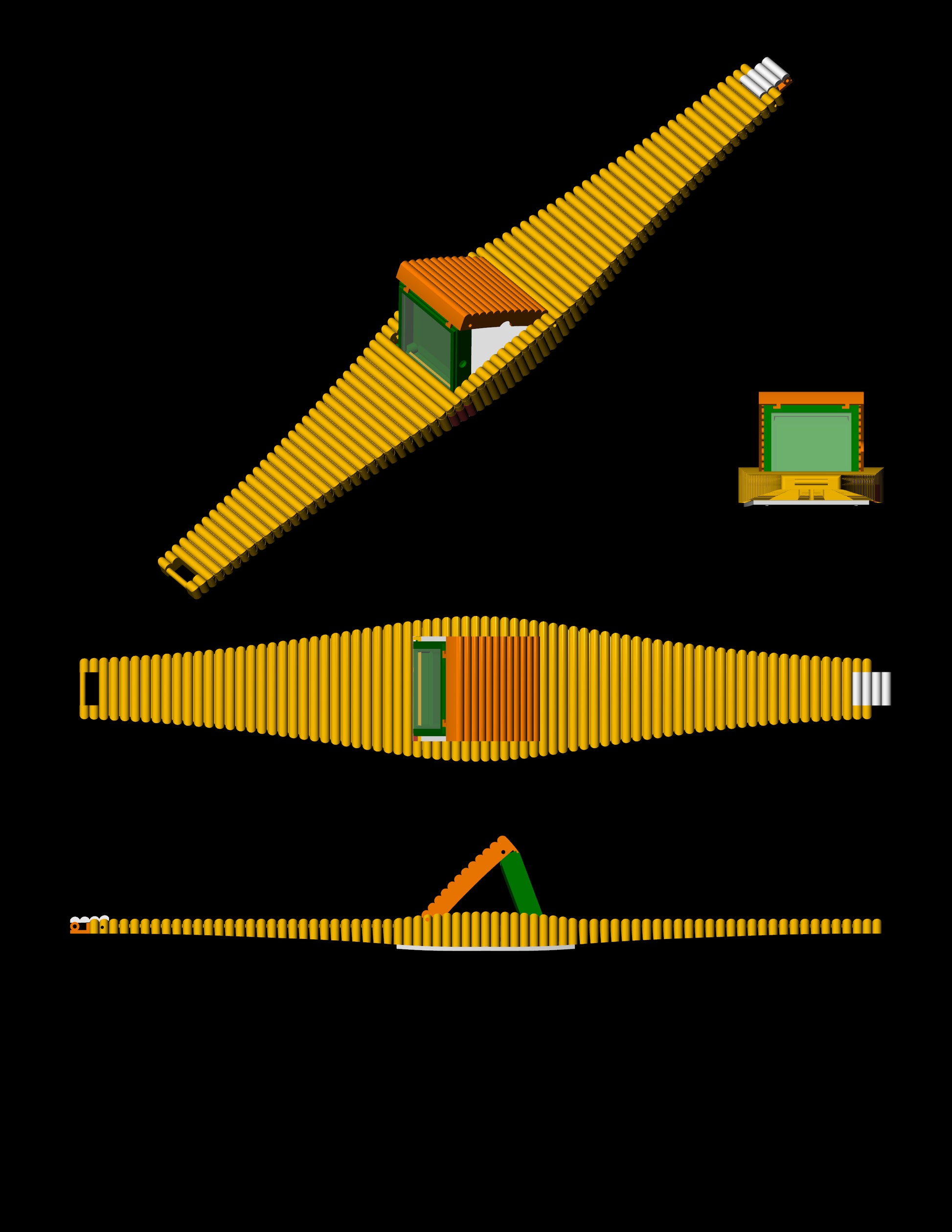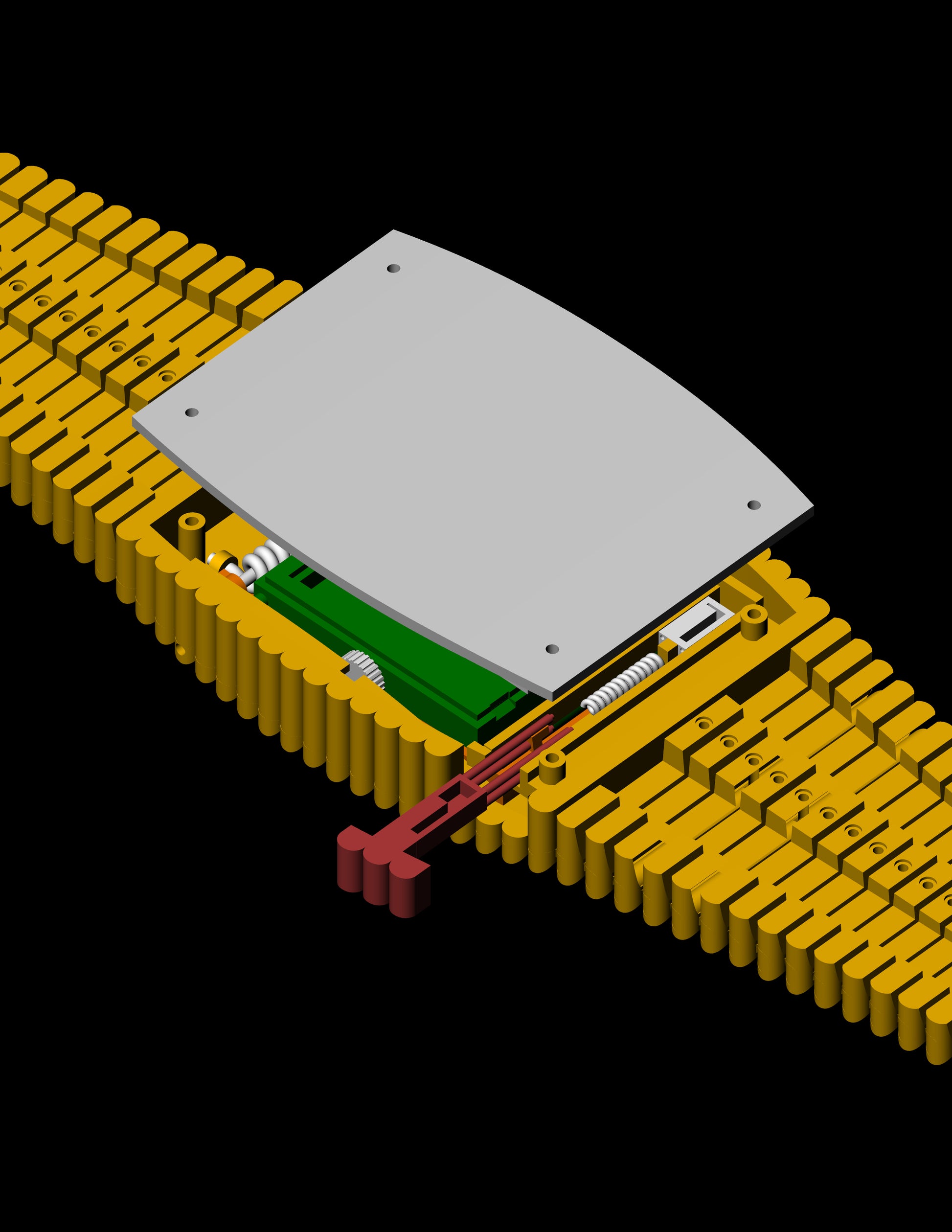 A sleek bracelet-style watch CAD design with a movable hinged cover to protect the dial. The design blends modern luxury with mechanical function, featuring a tapered bracelet made of cylindrical links for a refined, high-end aesthetic.
