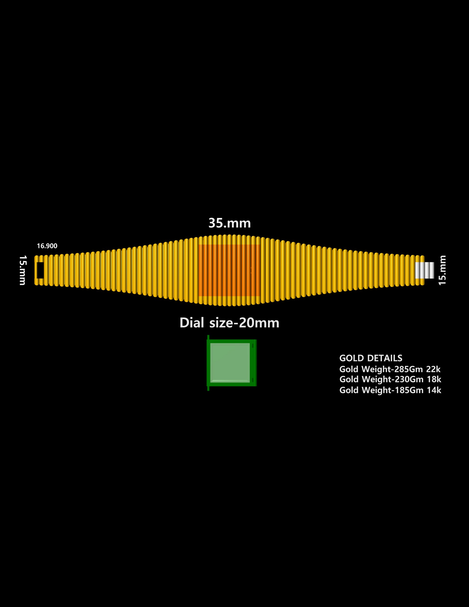- Bracelet Width: 35 mm (center) tapering to 15 mm