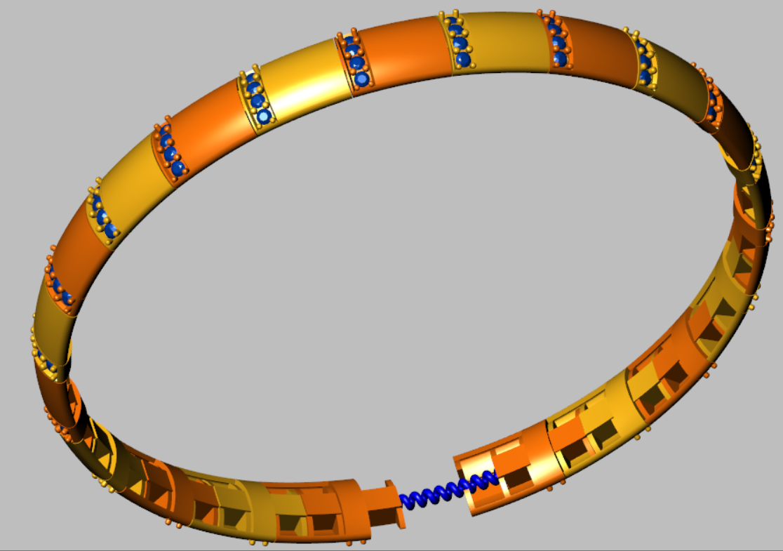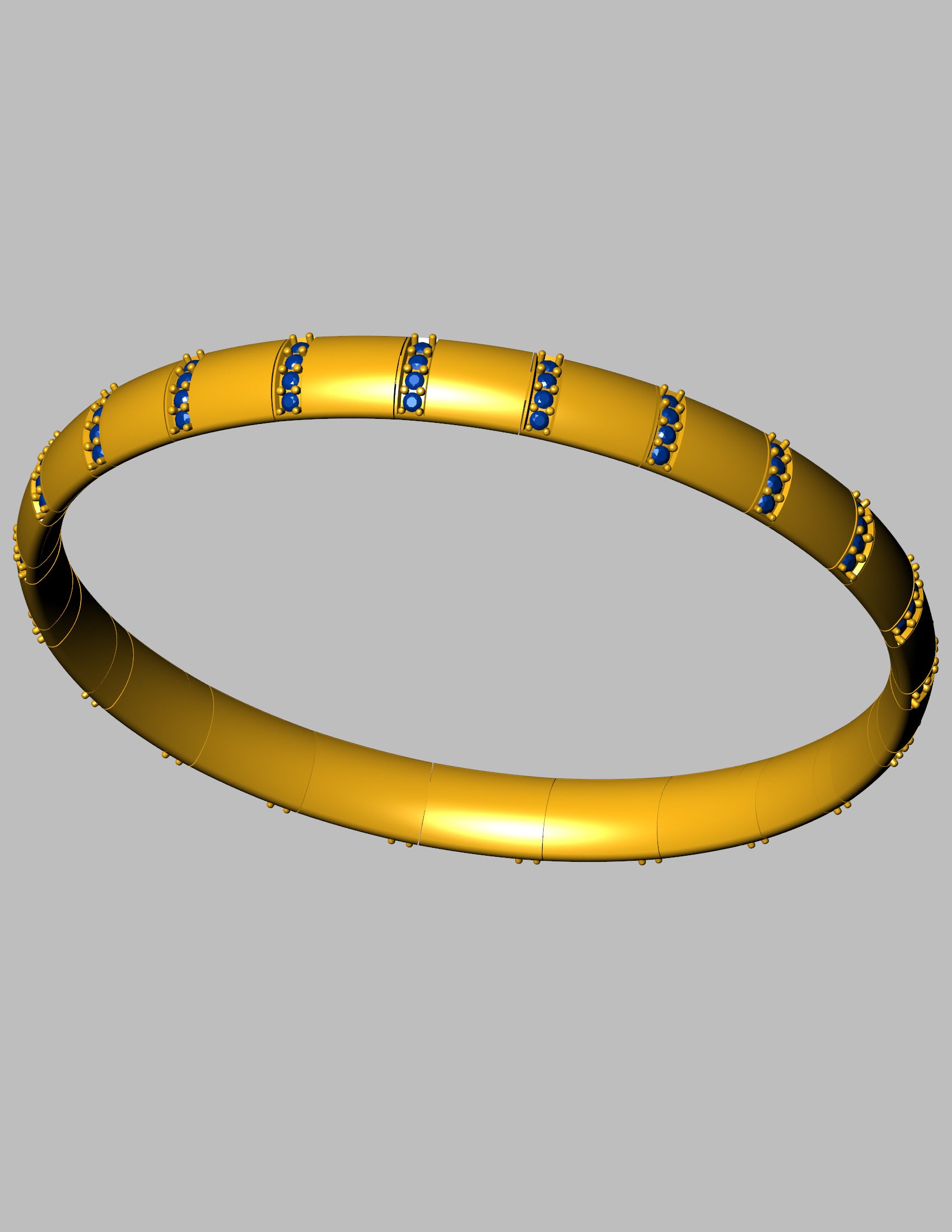 Premium CAD design of a flexible bracelet with a built-in spring mechanism. Ideal for comfort-fit jewelry without clasps. Designed for gem setting and seamless assembly.