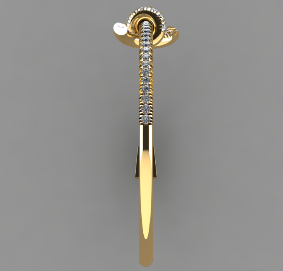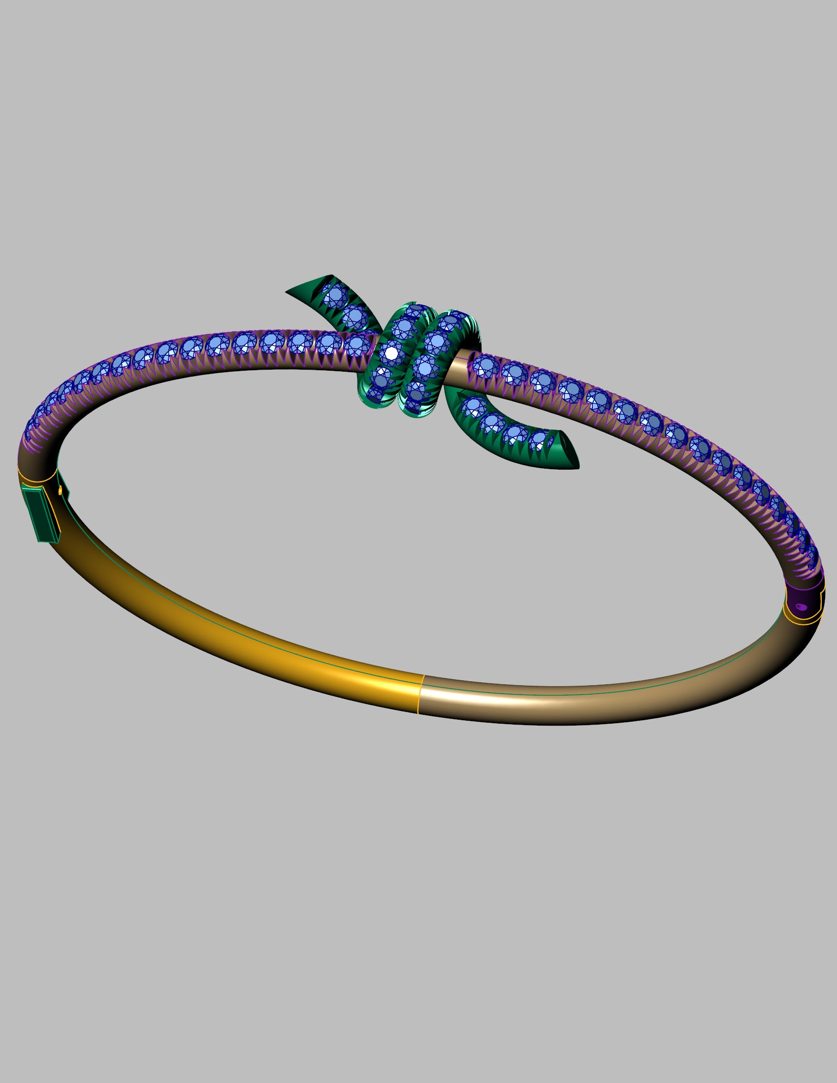 This original CAD design is inspired by the elegance of Tiffany & Co.’s Knot Collection, featuring a refined tubular bangle with a central pavé-set knot motif. The standout feature is its integrated hidden clasp mechanism, designed for both aesthetic flow and secure wear—perfect for fine jewelry production.