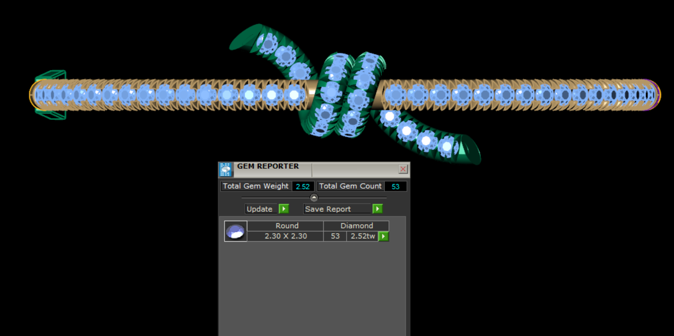 - Total Gemstones: 53 round diamonds (2.30 mm)