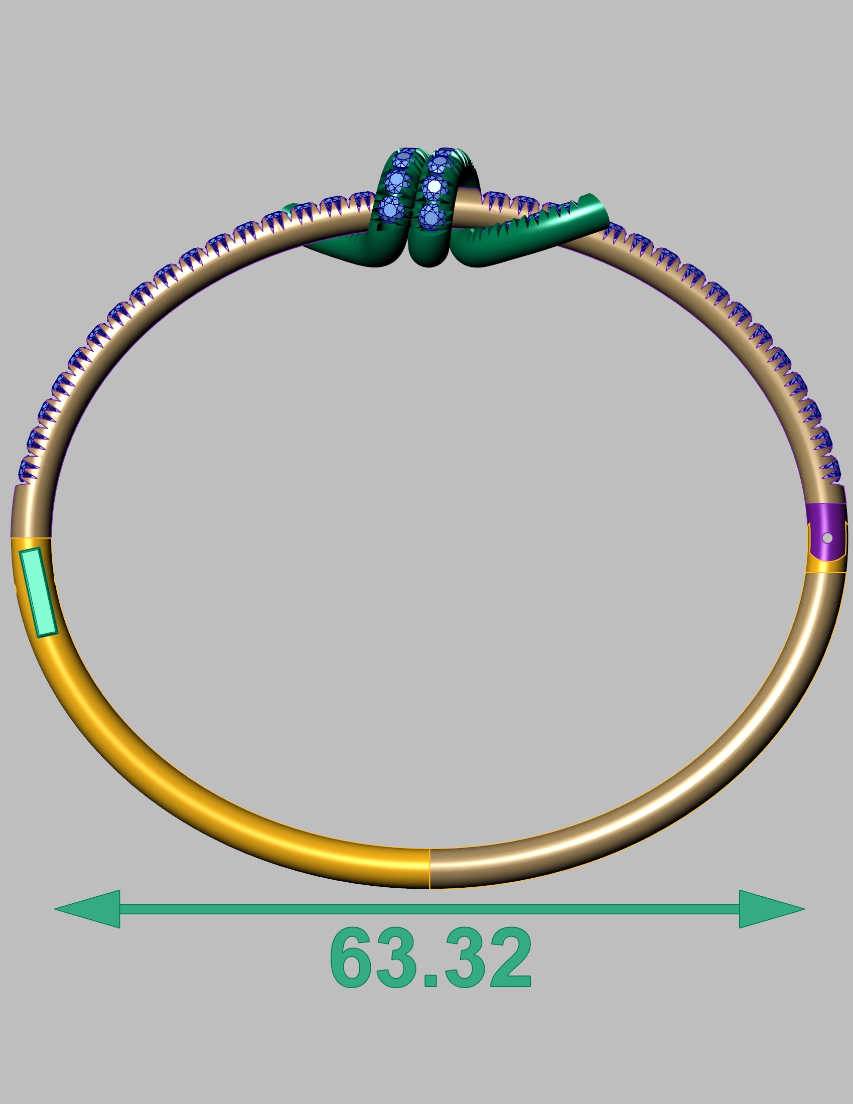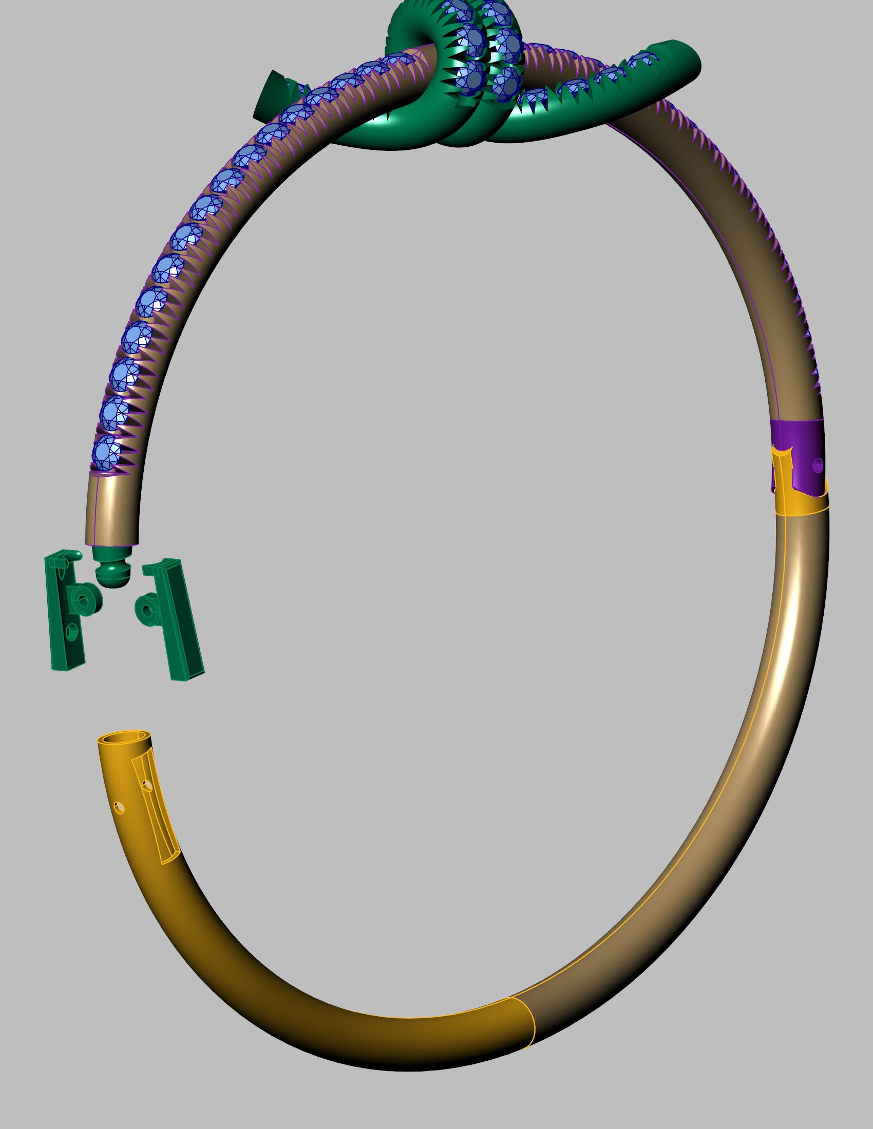 Tiffany Inspired Diamond Knot Bangle CAD File With Hidden Clasp Lock Mechanism