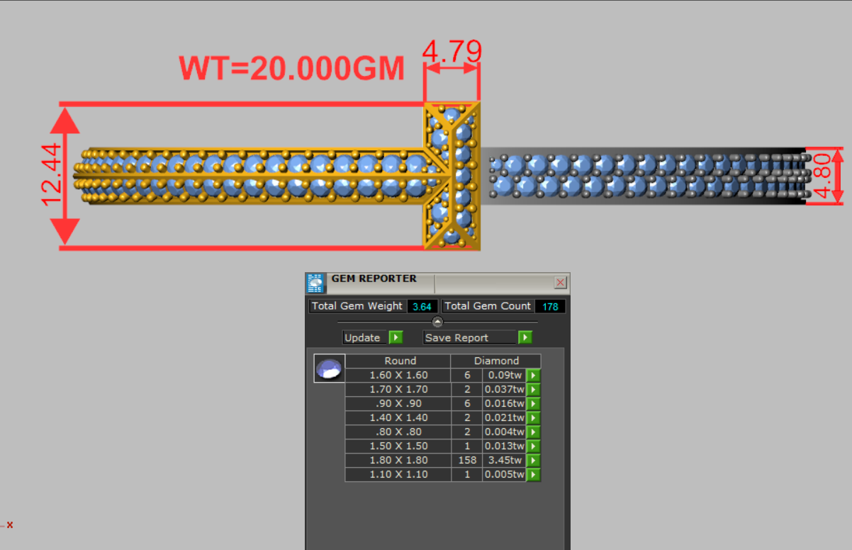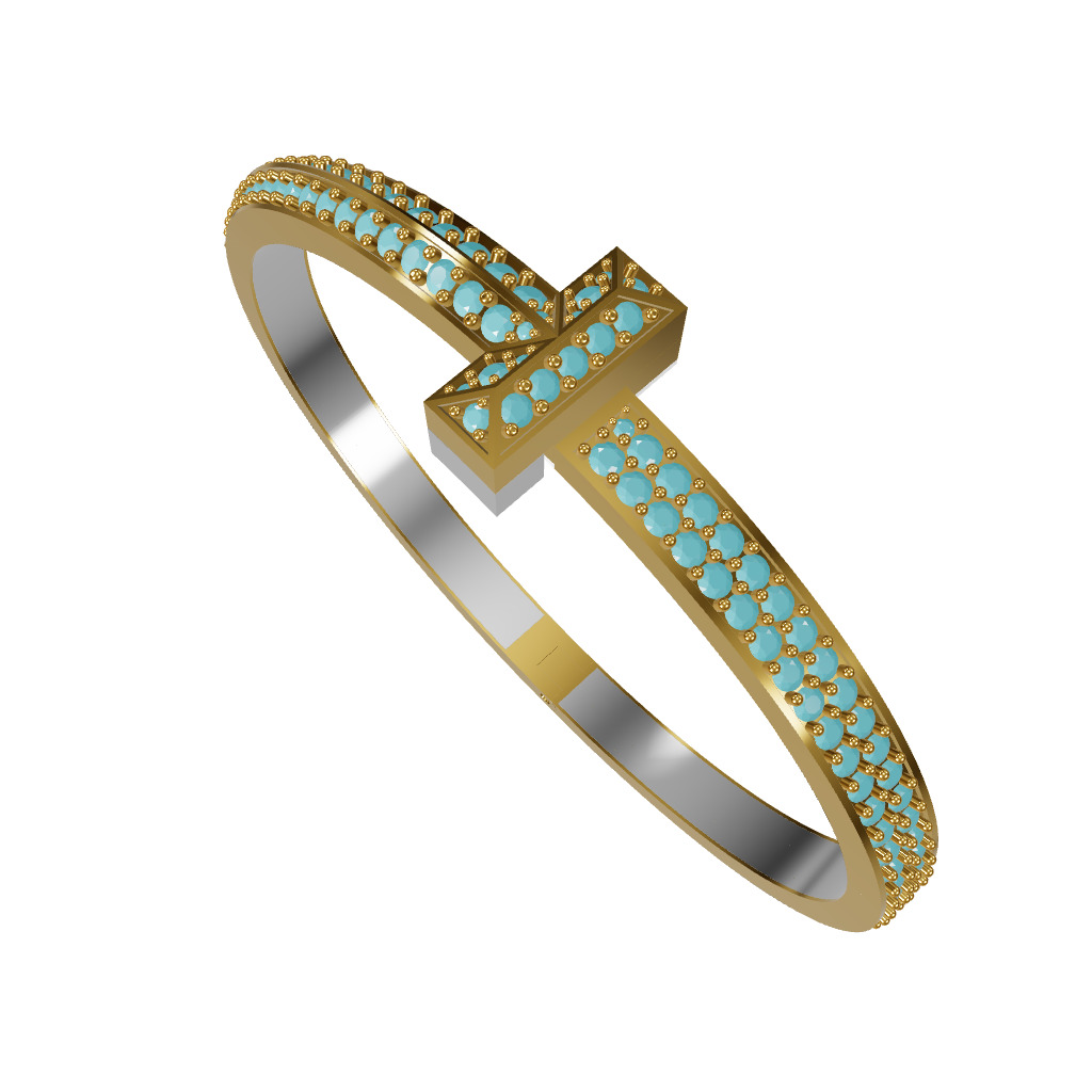 This striking CAD design is inspired by the powerful geometry of Tiffany & Co.’s T1 Collection. Featuring a bold “T” bar center and three rows of pavé-set diamonds, the bangle elevates Tiffany’s signature aesthetic into a high-jewelry look. With 178 diamonds of various sizes totaling approximately 3.64 carats, this piece is ideal for luxury fabrication.