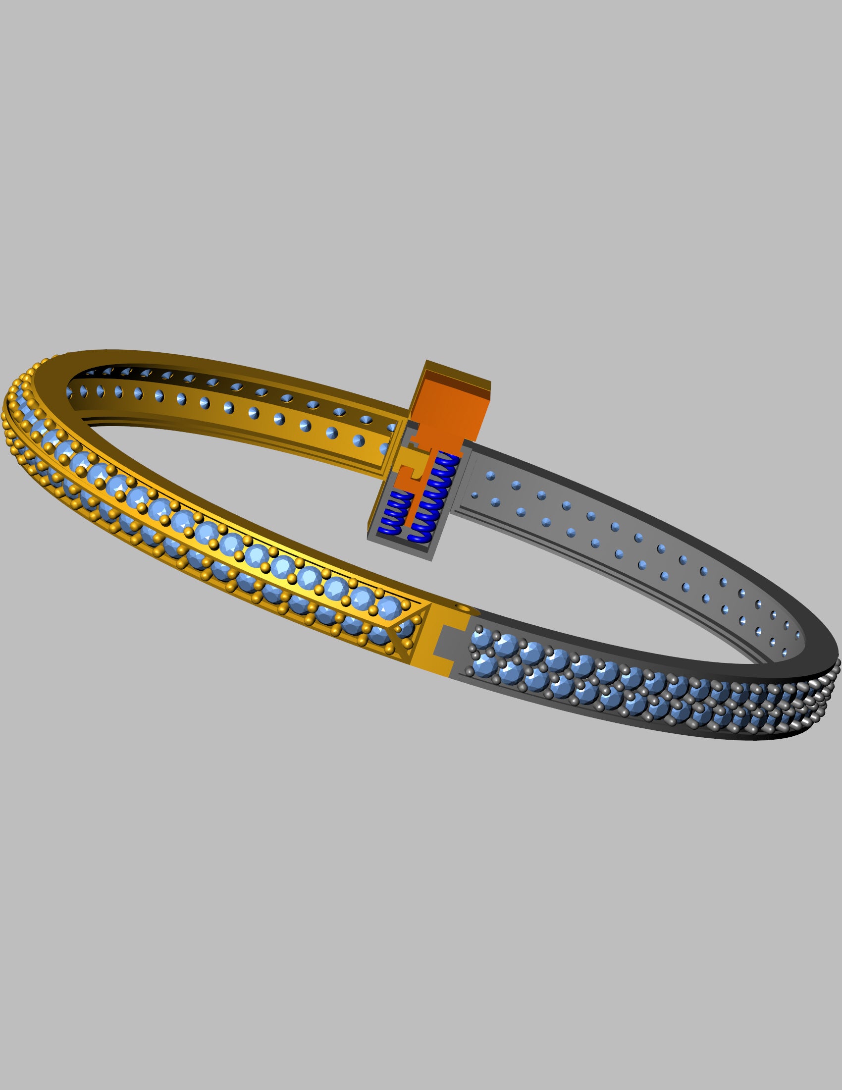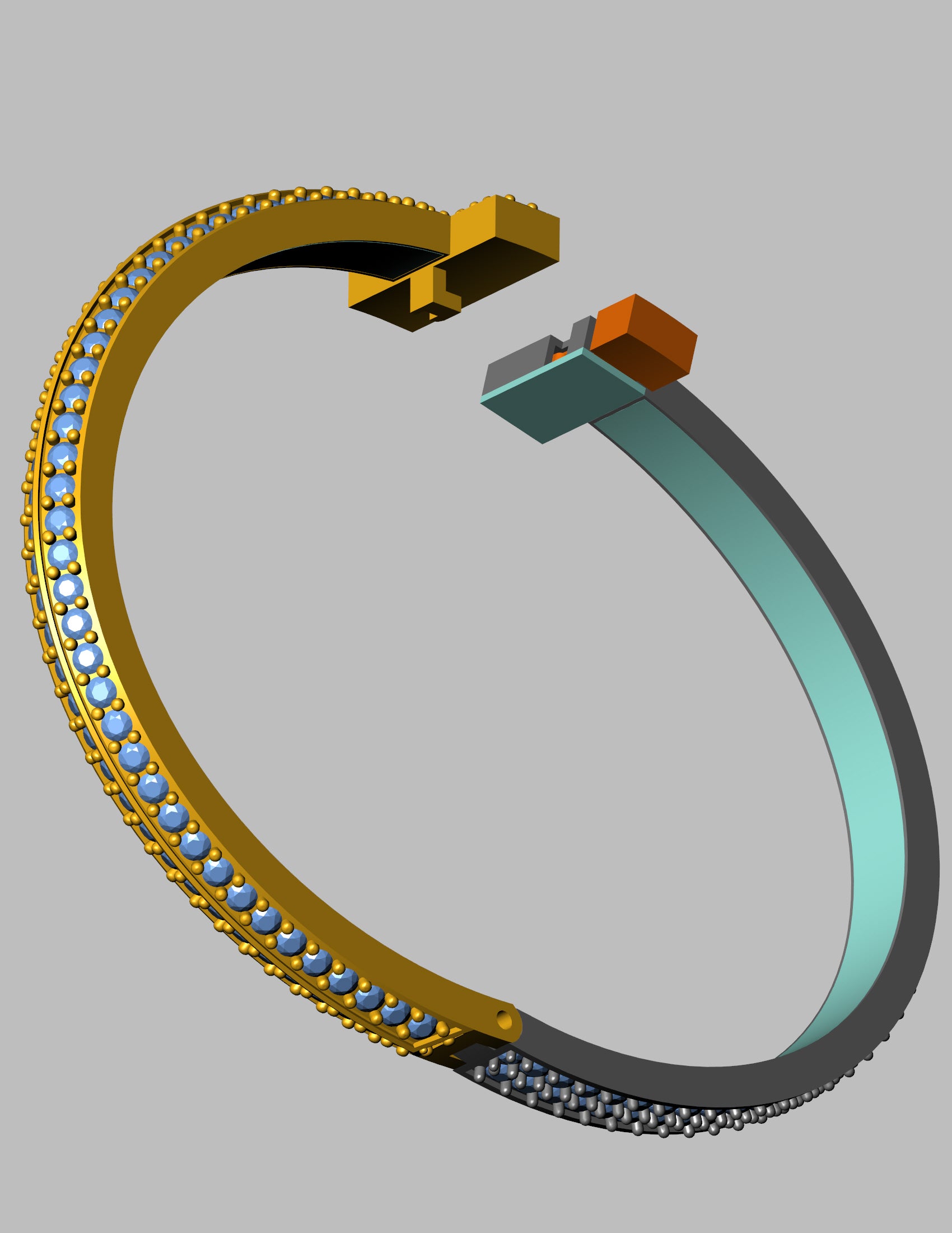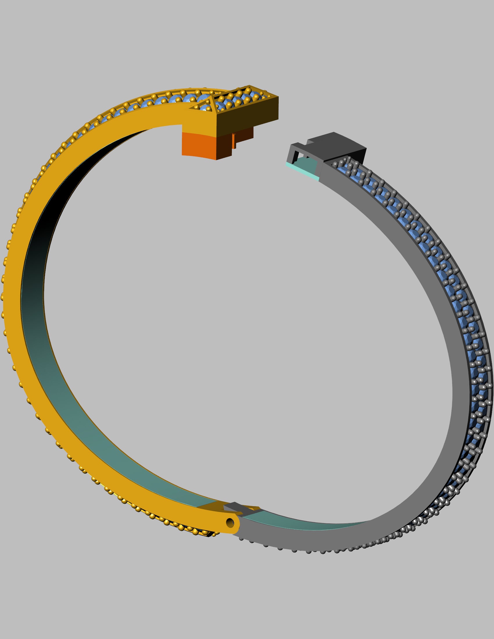 Engineered for 18K gold (approx. 20 grams), it includes a fully detailed box clasp with a security latch. Its curved band shape (inner size 56.1 mm x 42.1 mm) and max width of 12.44 mm make it a standout piece for custom orders or exclusive collections.