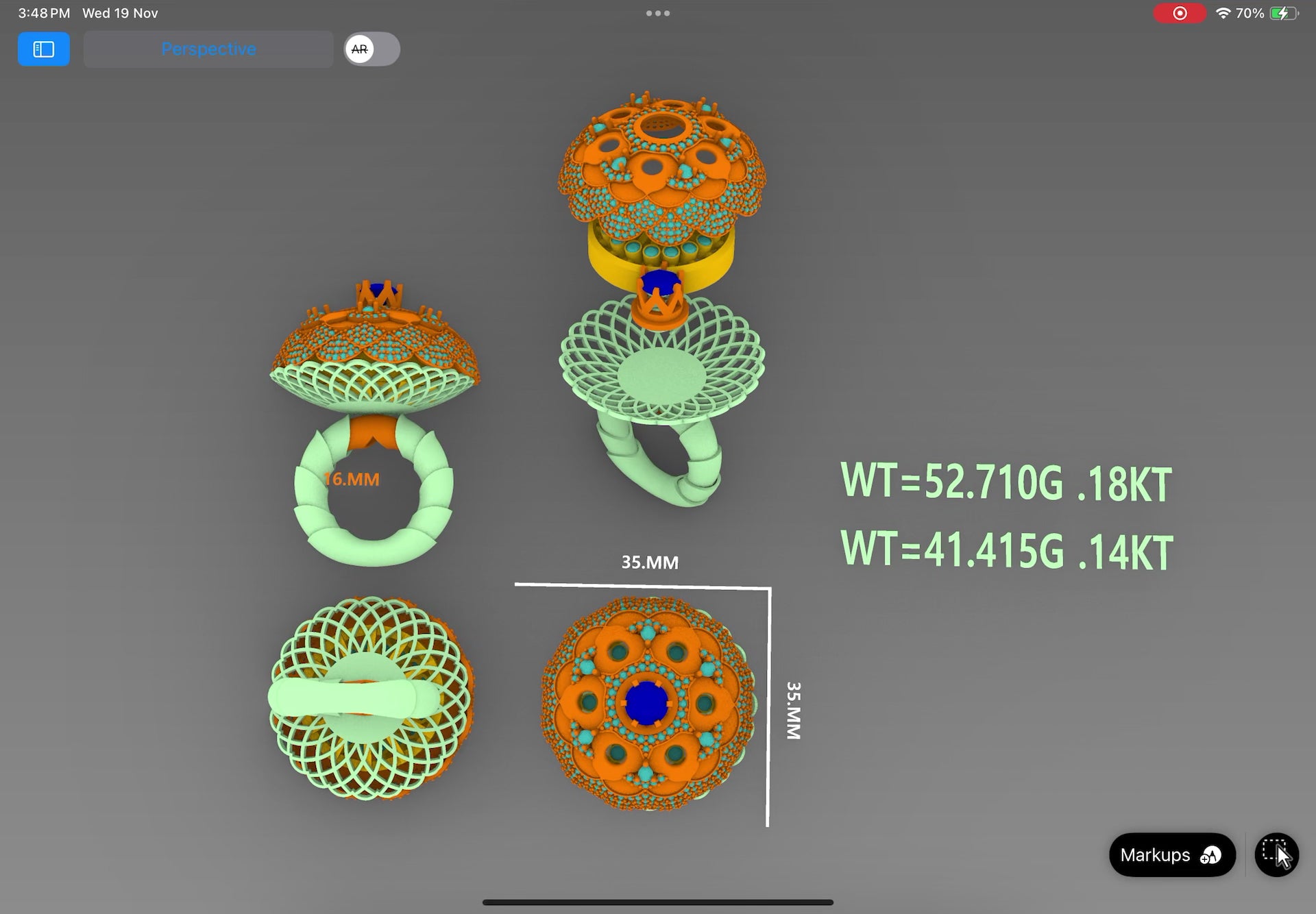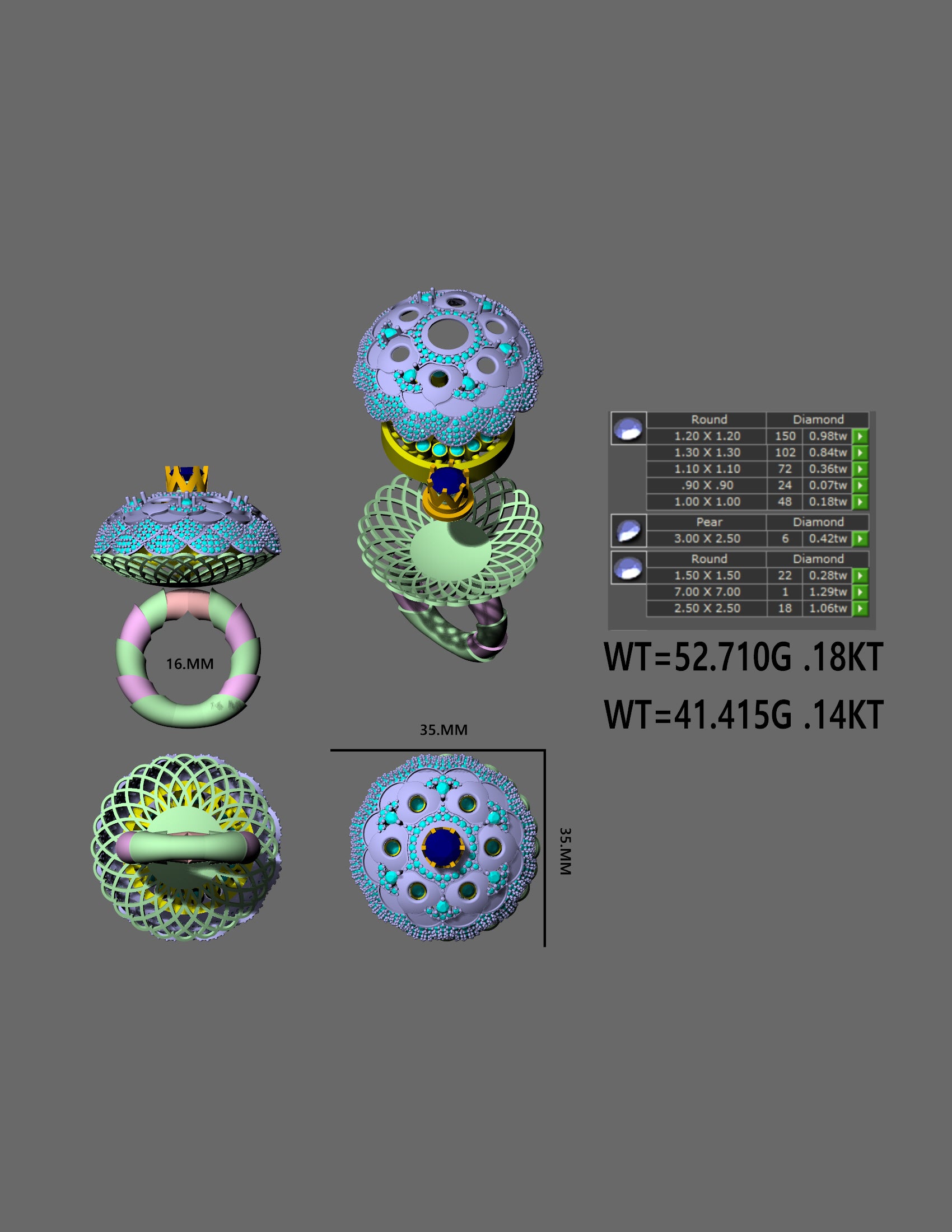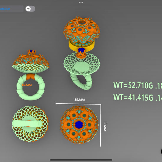 The ring measures 35 mm × 35 mm, with a comfortable 16 mm inner diameter, balanced by a woven under-structure that enhances durability while maintaining an airy, organic silhouette. Multiple micro-pavé settings ensure seamless stone distribution, creating a natural flow of light across the surface.Crafted in CAD with precision weight calculations: 52.710 g in 18KT 41.415 g in 14KT