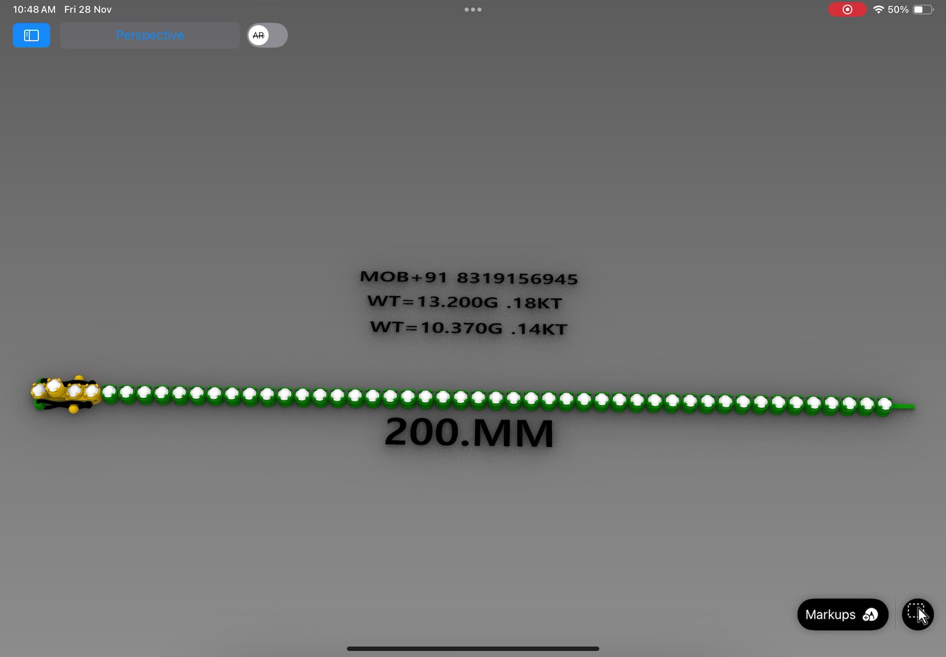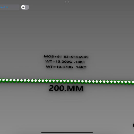 This elegant bracelet design features a continuous line of round stones arranged in a clean and refined sequence, creating a classic tennis-style aesthetic. The model spans 200 mm in total length, offering a comfortable and balanced fit suitable for most wrist sizes. Each stone is precisely aligned along a straight, uniform rail, ensuring symmetry and professional finishing throughout the CAD structure.